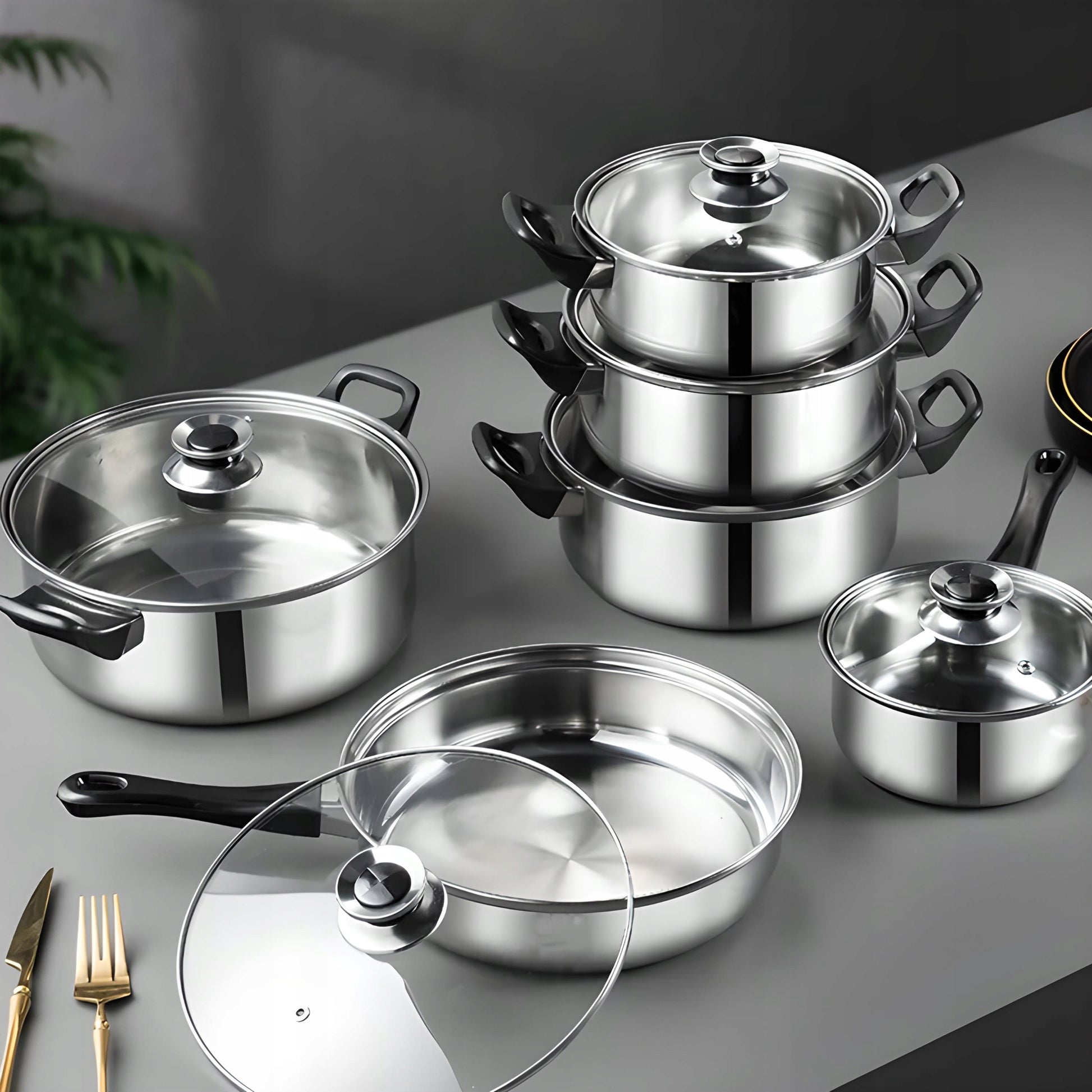 Aukštos Kokybės 12 dalių Nerūdijančio Plieno Puodų ir Keptuvės Rinkinys