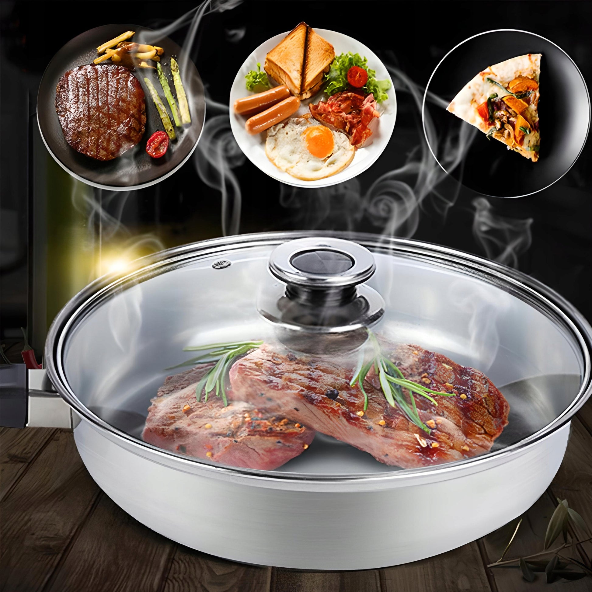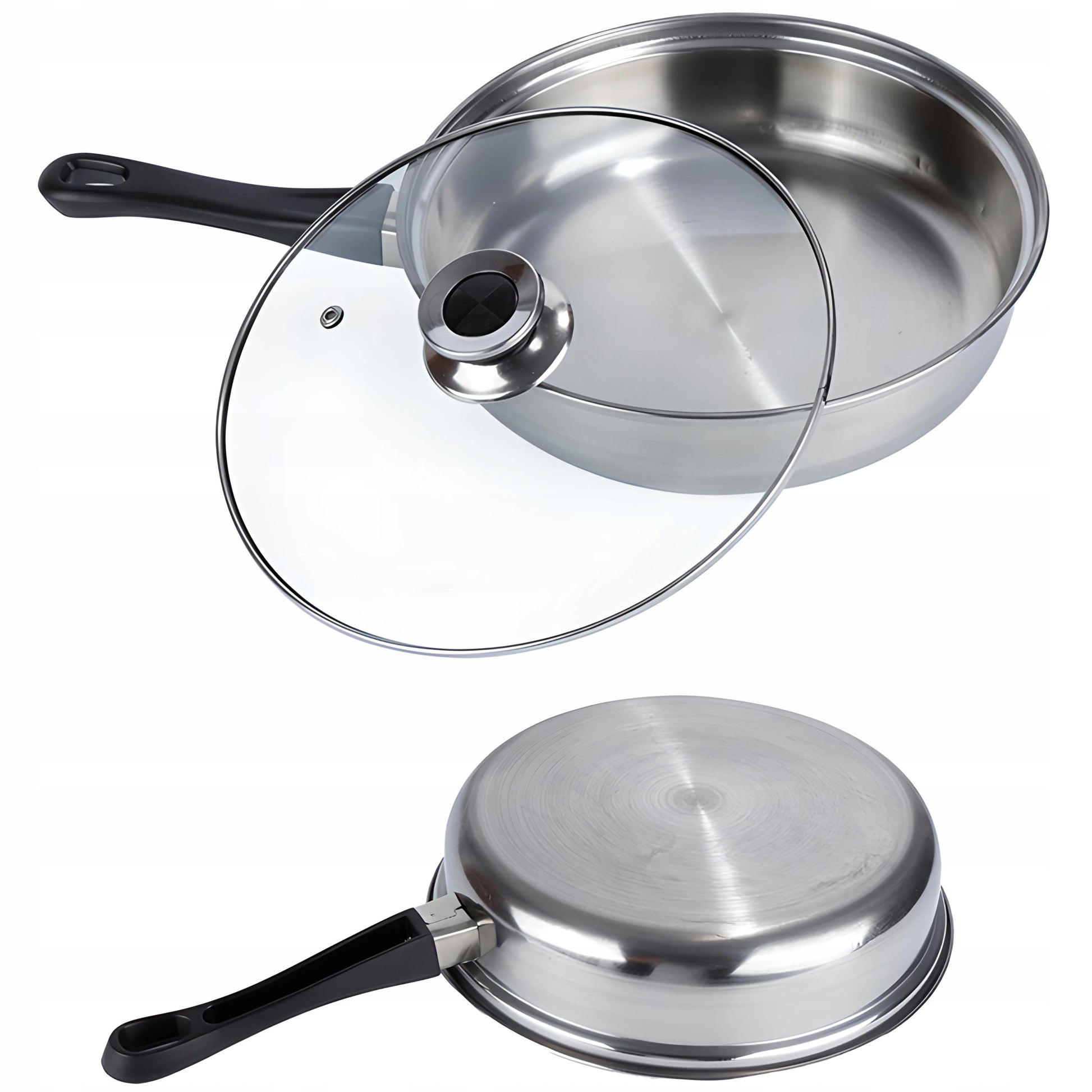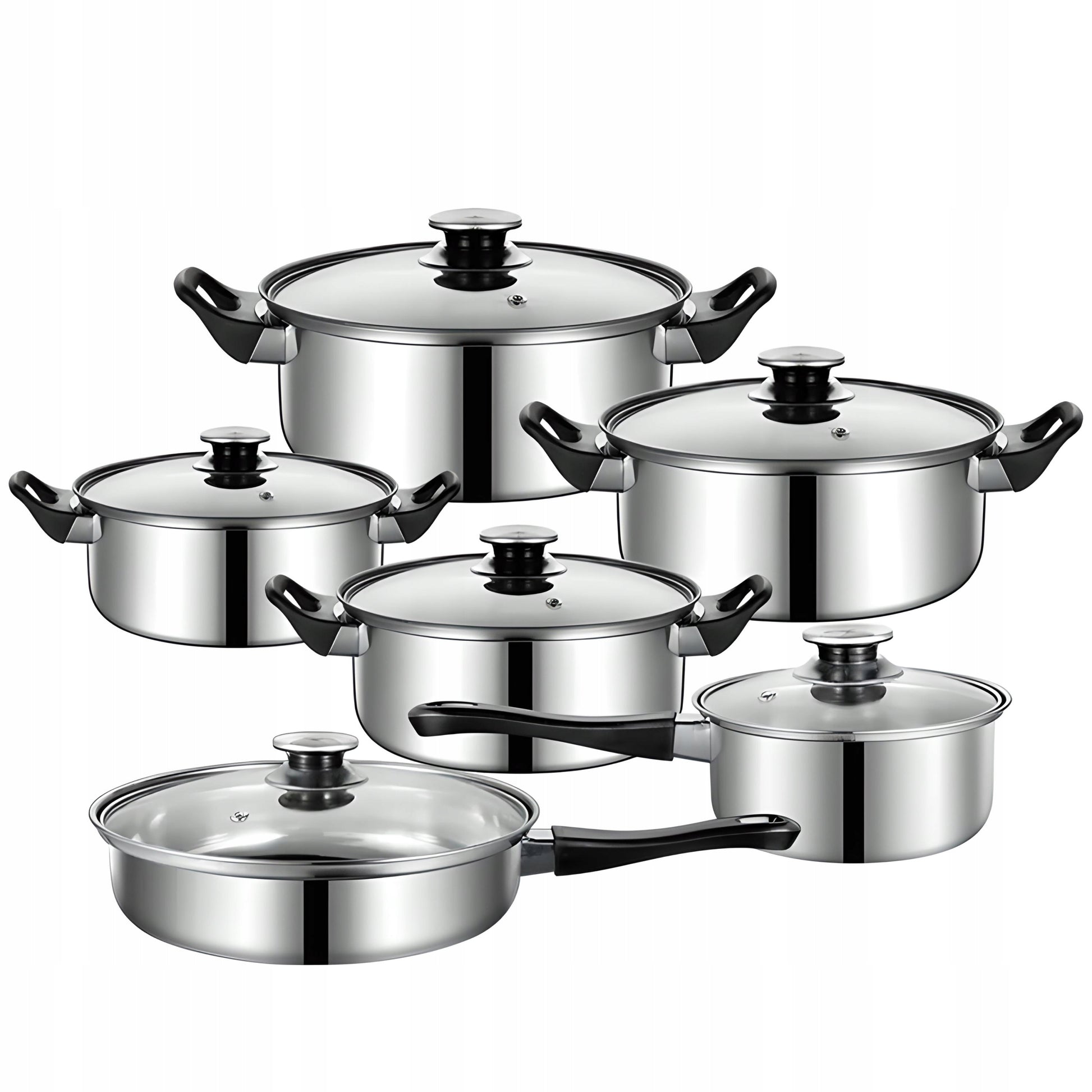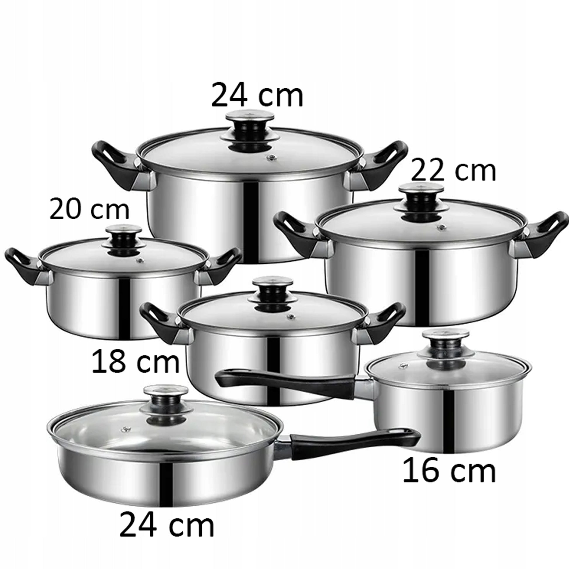 12 vnt. plieninių virtuvės puodų ir keptuvės komplektas su dangteliais