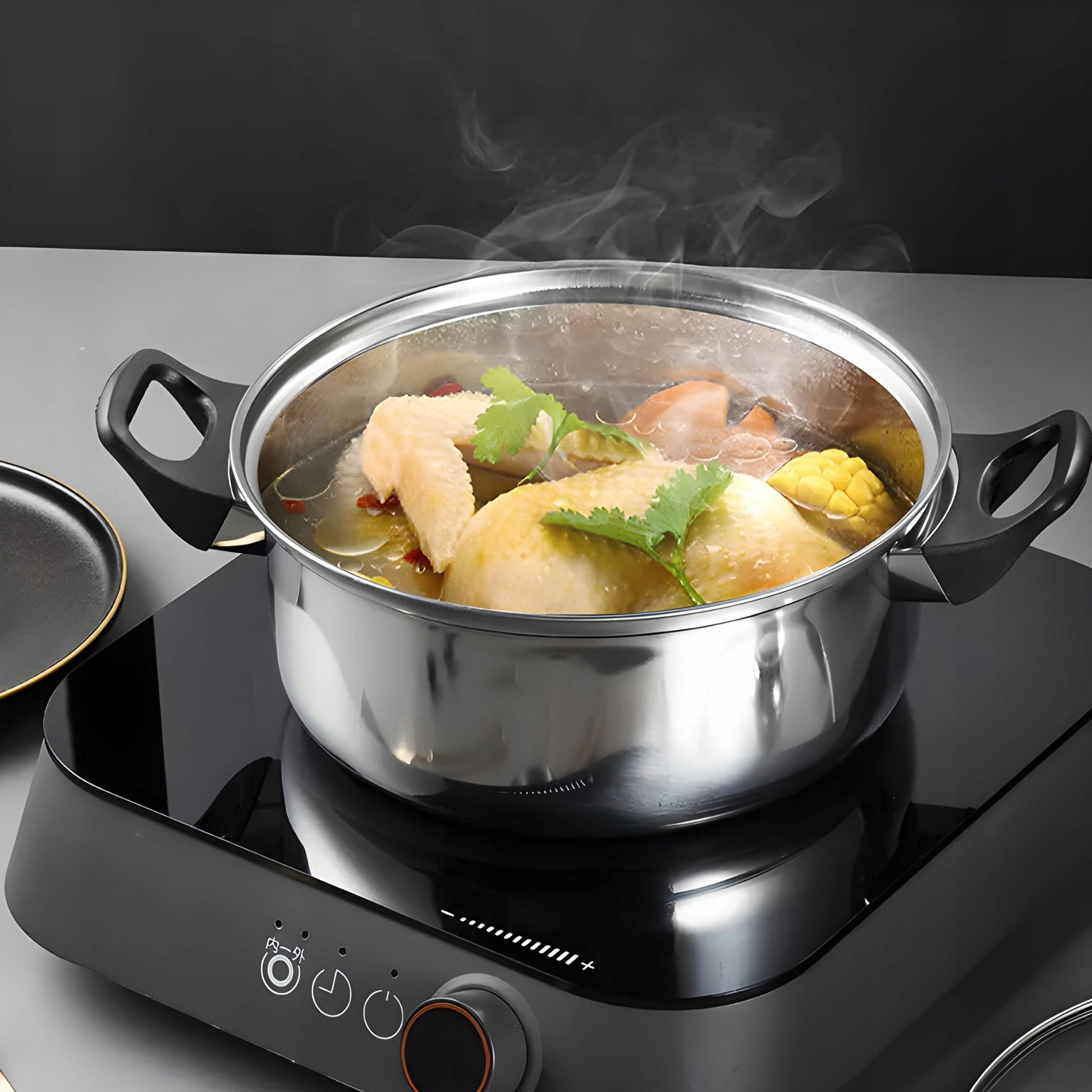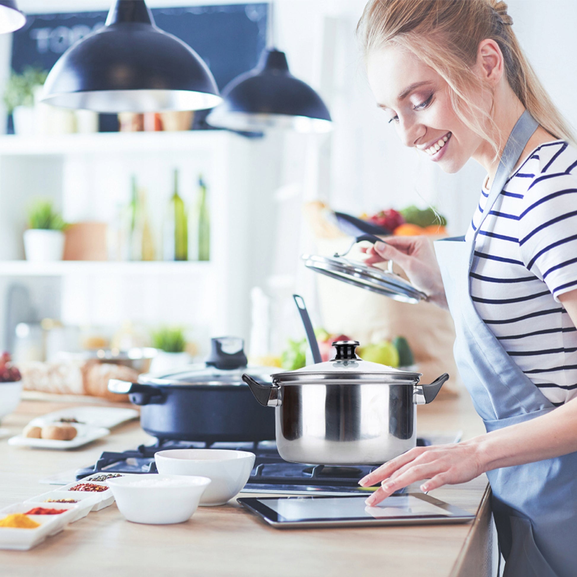 Šis nerūdijančio plieno indų rinkinys pasižymi išskirtiniu universalumu – jis tinka visų tipų viryklėms, įskaitant dujines, elektrines ir indukcines. Dėl skirtingų puodų talpų ir pridedamos keptuvės, galėsite ne tik virti, bet ir troškinti ar kepti. Nerūdijančio plieno paviršius yra itin lygus ir neakyėtas, todėl jį lengva prižiūrėti. Net ir po daugybės naudojimo, indai išlaiko savo estetinę išvaizdą. Dėl ypač paprasto valymo, šį rinkinį galima saugiai plauti indaplovėje, taupant Jūsų brangų laiką.