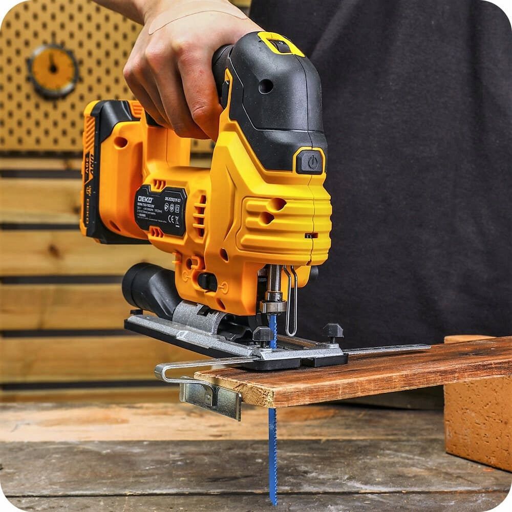 DEKO DKJS20Q1Y dėlionė idealiai tinka įvairiems medienos apdirbimo darbams. Jos galimybė atlikti iki 100 mm gylio pjūvius medienoje leidžia dirbti su storesnėmis lentomis ar medžio masyvu. Dėl reguliuojamo svyravimo ir greičio nustatymų, galėsite rinktis optimalią darbo eigą tiek šiurkščiam, tiek itin preciziniam pjovimui. Kampinio pjovimo funkcija atveria naujas dizaino ir konstrukcijos galimybes, leidžiant sukurti sudėtingesnius gaminius. Lazerinė kreipiamoji ir LED apšvietimas užtikrina, kad pjovimo linija bus visada matoma, o rezultatas – nepriekaištingas.