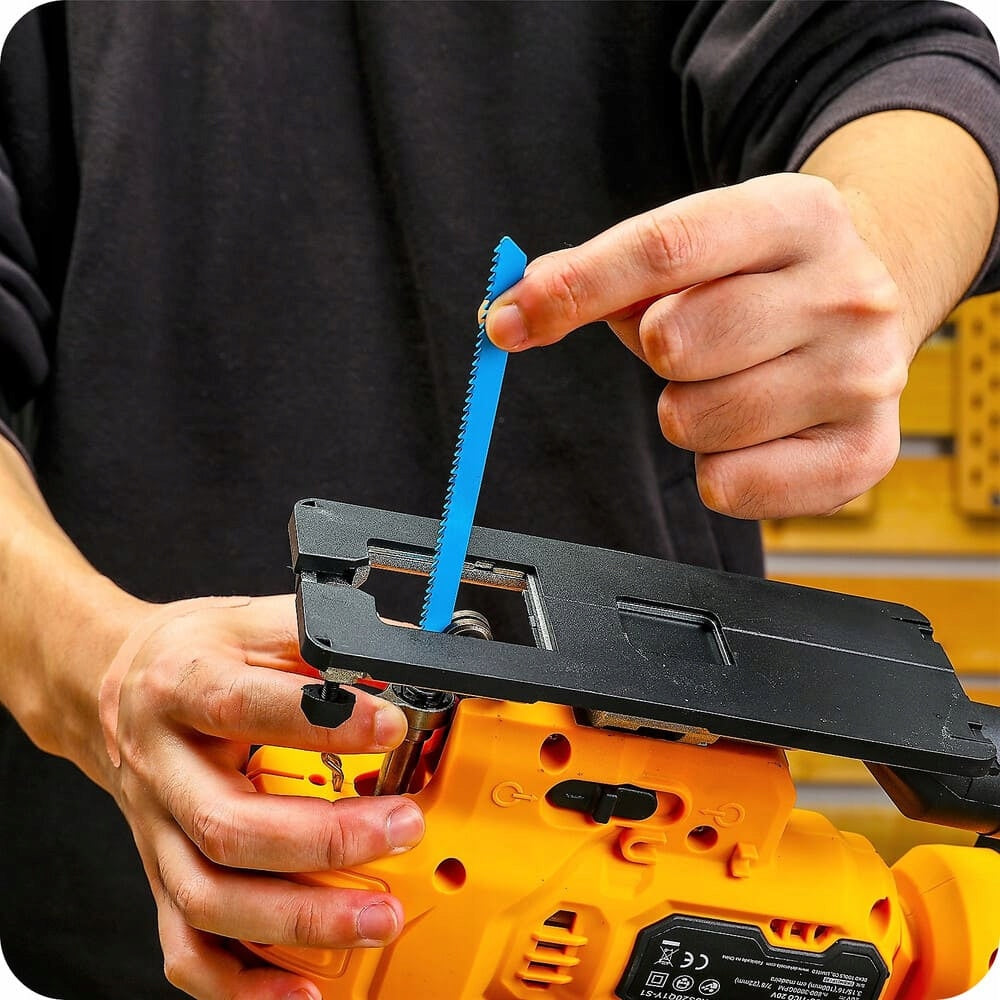 Akumuliatorinė dėlionės pjūklas medienai, metalui 20V 2Ah su ašmenimis, rinkinys DEKO