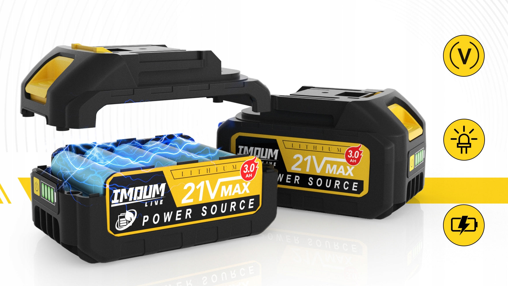 - 2 x 21V 3000 mAh Li-ion akumuliatoriai