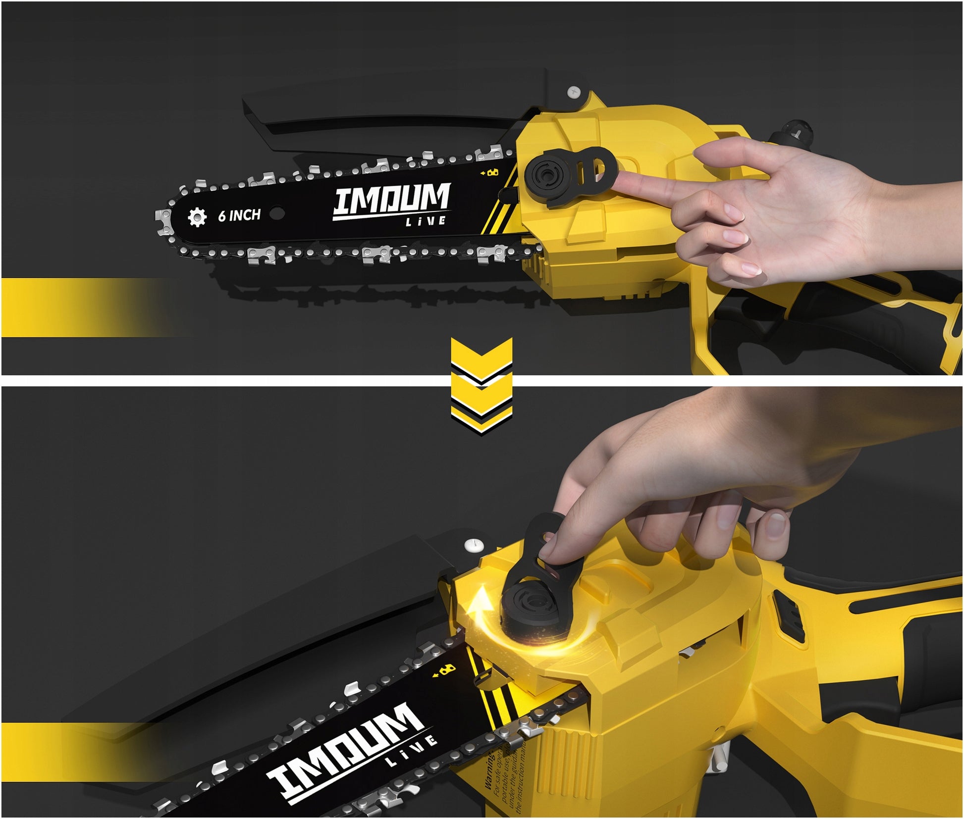 IMOUM DLJS6 PRO sukurtas atsižvelgiant į vartotojo patogumą ir saugumą. Integruota automatinio grandinės sutepimo sistema užtikrina optimalų pjūklo darbą ir ilgina grandinės bei kreipiamosios tarnavimo laiką, o reguliuoti įtempimą galėsite lengvai, be papildomų įrankių. Ergonomiška, paminkštinta rankena suteikia tvirtą sukibimą, o saugos jungiklis apsaugo nuo netyčinio įsijungimo. Kompaktiškas dizainas ir lengvas svoris (tik 1,6 kg su akumuliatoriumi) leidžia dirbti ilgai be nuovargio.
