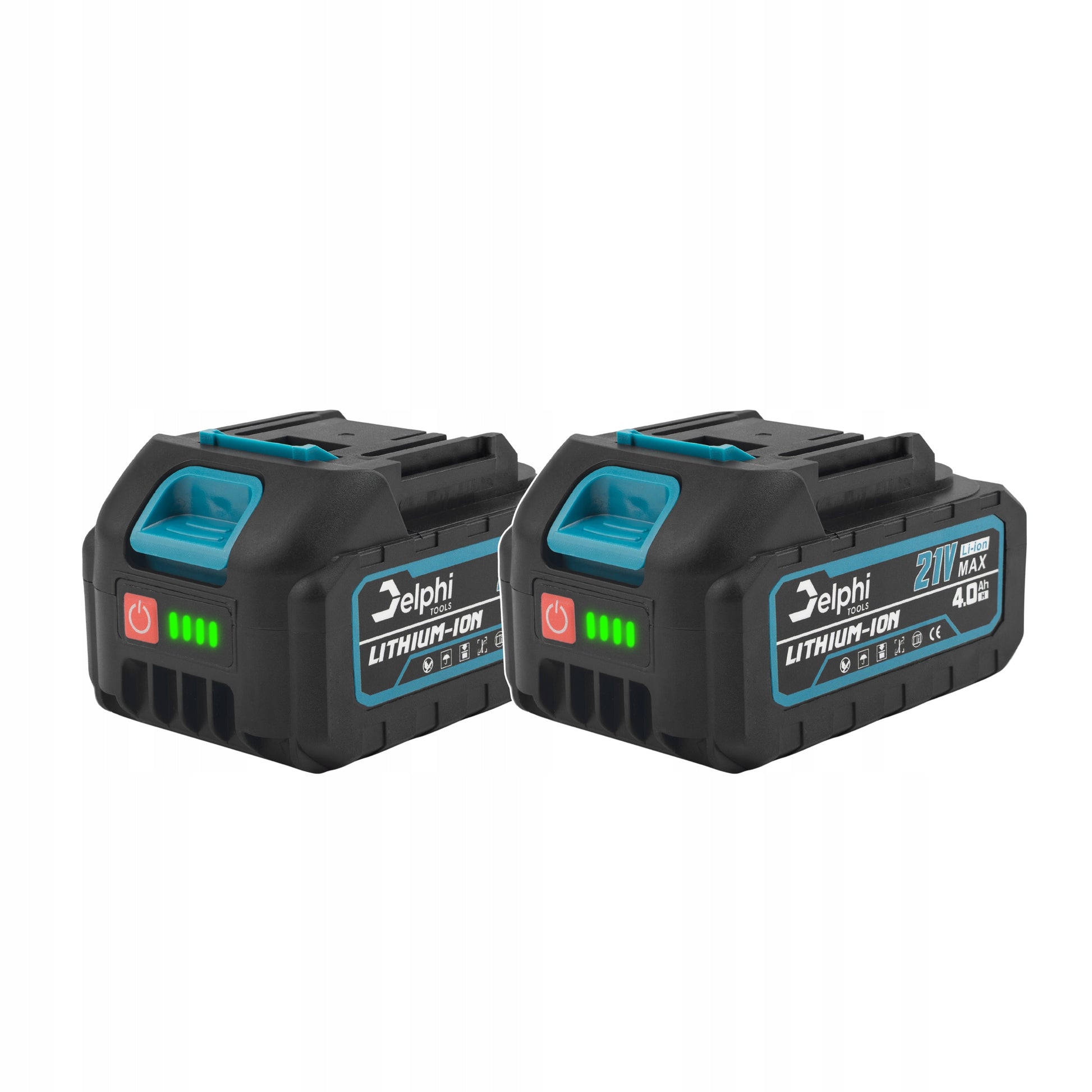 - 2 x 21V, 4000 mAh Li-Ion akumuliatoriai su įkrovimo lygio indikatoriumi