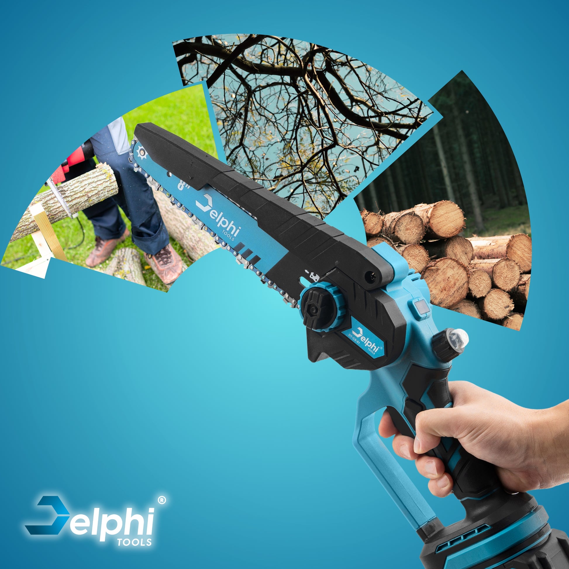 Galinga ir patogi akumuliatorinė pjūklas-šakų genėtuvas Delphi Tools PRO 8"