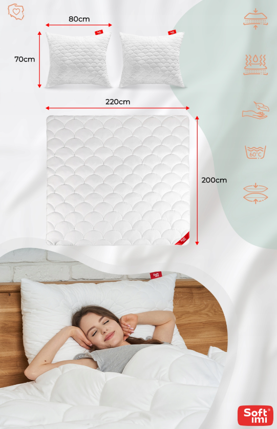 Antialerginė antklodė (200×220cm) + dvi minkštos pagalvės (70×80cm)