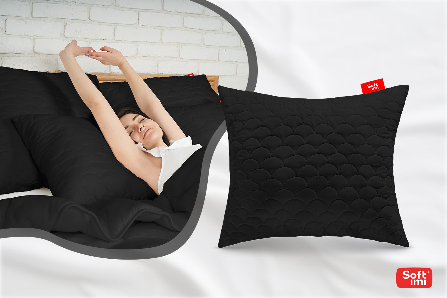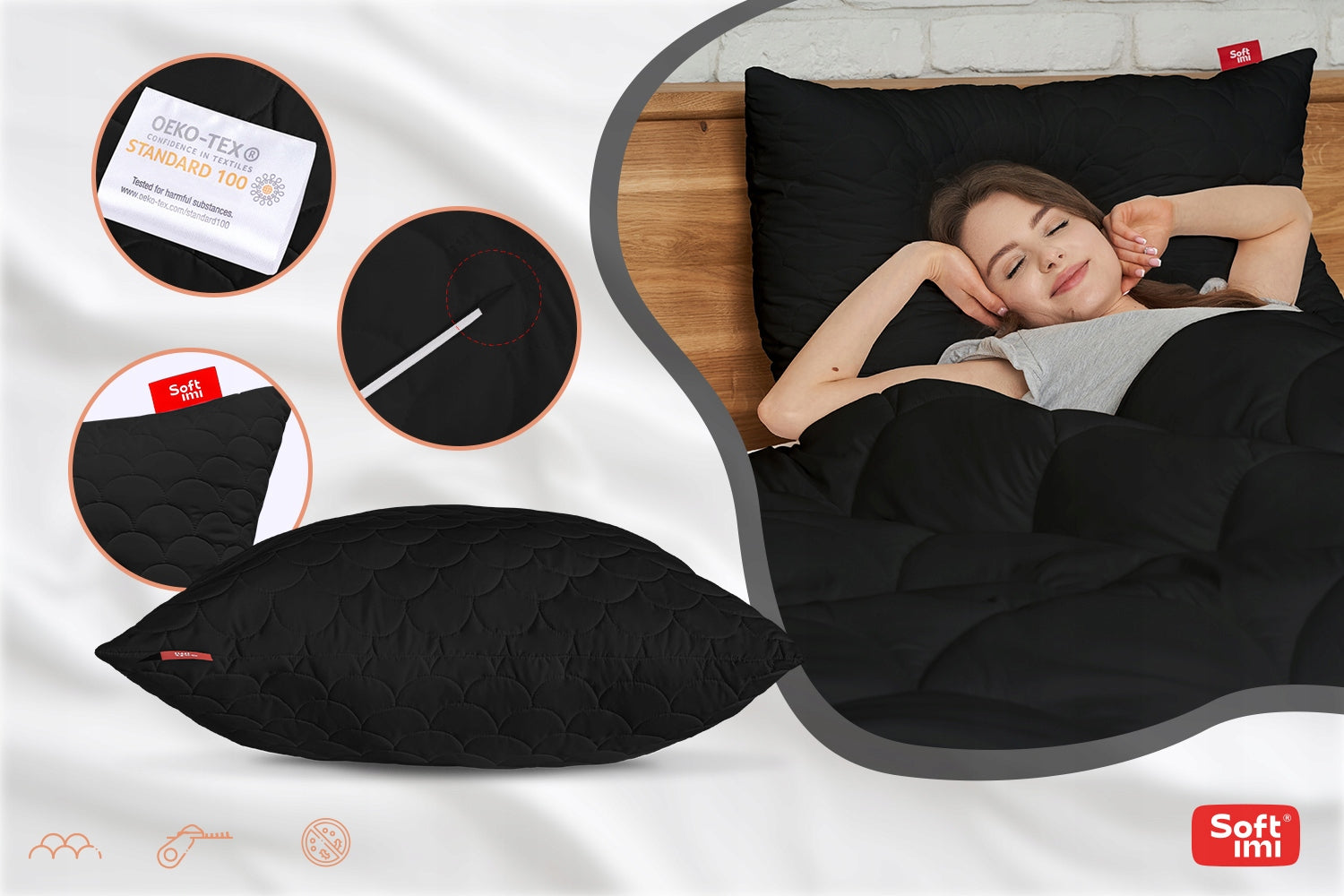 Antialerginė pagalvė 2x70x80 cm Miego komplektas Dygsniuota Juoda Lenkiška