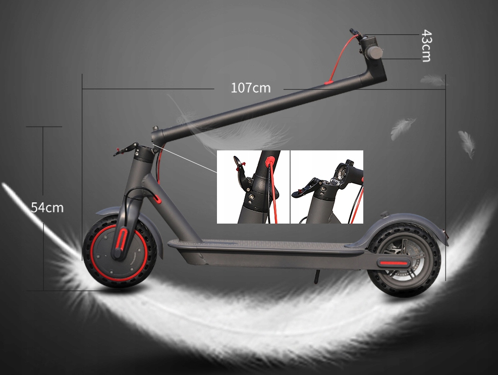 - Paspirtuko svoris apie 12kg, todėl jį galima patogiai neštis