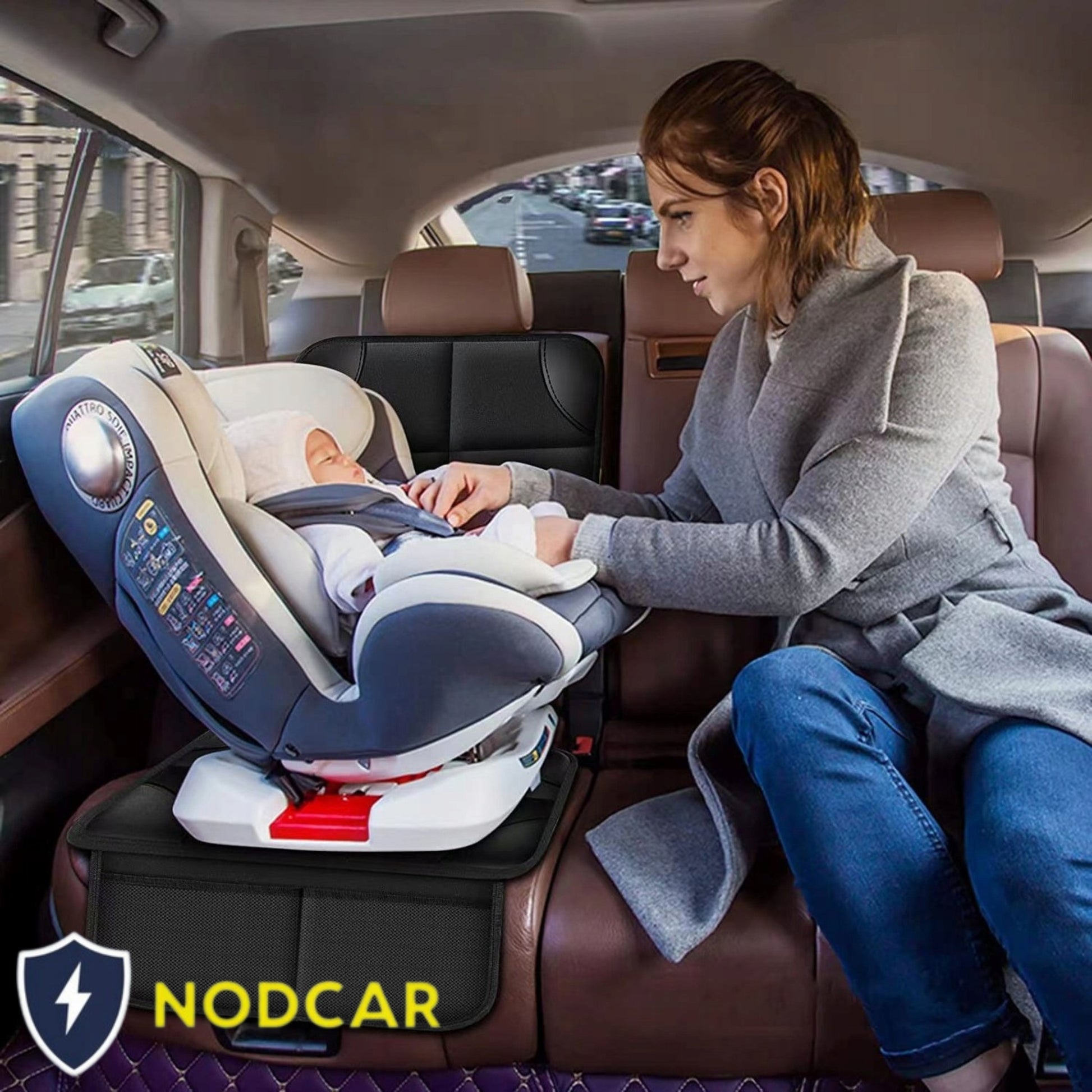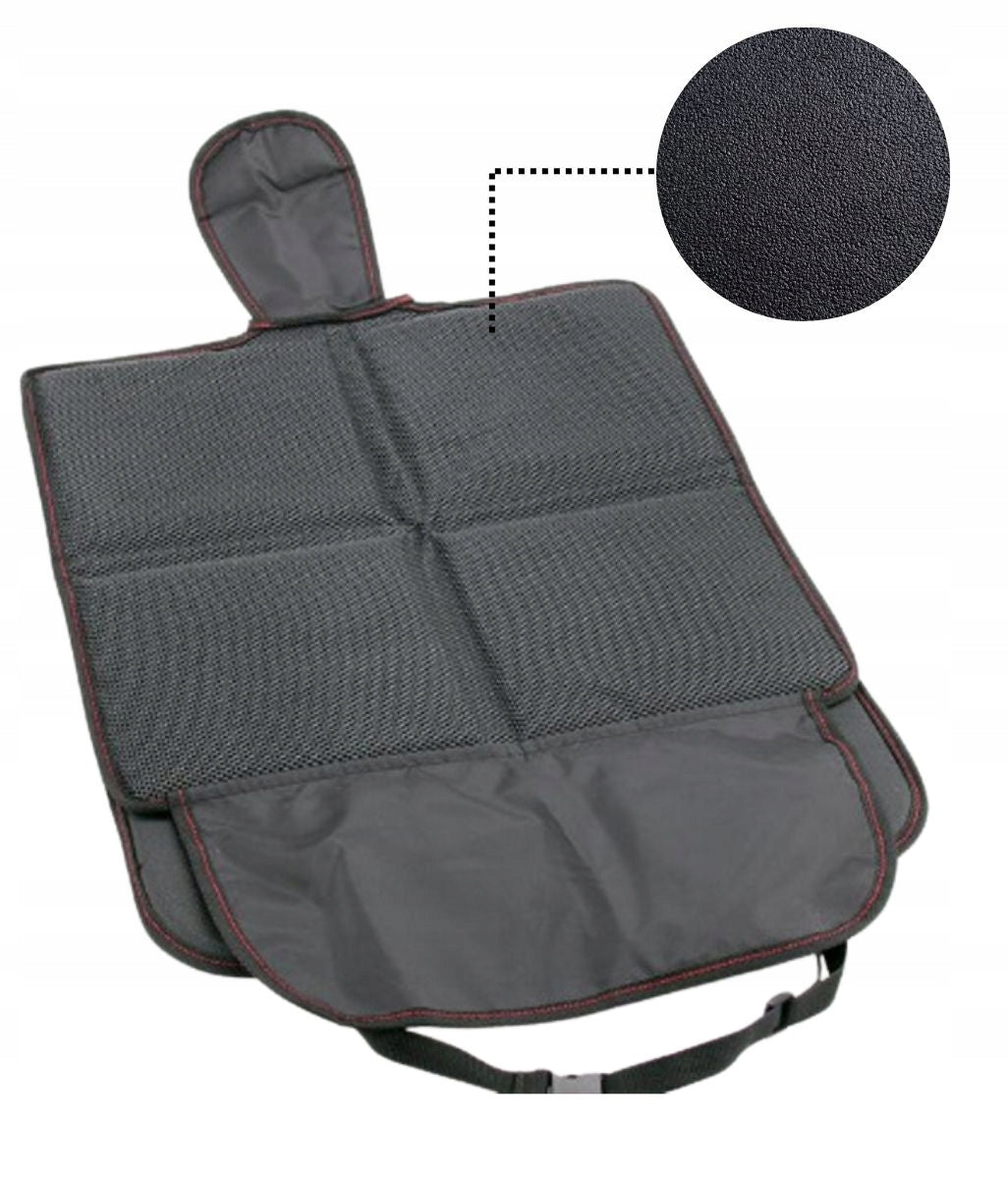 Šie universalūs apsauginiai kilimėliai sukurs barjerą tarp automobilio sėdynės ir automobilinės kėdutės, taip apsaugodami nuo nuolatinio spaudimo, trynimo ir galimų dėmių. Tvirta, 400 g/m² storio apmušalinė medžiaga su elegantiškais „odos“ elementais ir guminiu pagrindu užtikrina, kad kilimėlis išliktų stabilus ir neslystų, net ir intensyviai naudojant. Papildomas privalumas – apatinėje dalyje esantis patogus organizatorius, kuriame galima laikyti smulkius daiktus, tokius kaip žaislai, servetėlės, knygutės ar gertuvės, o tai itin palengvina keliones su vaikais.