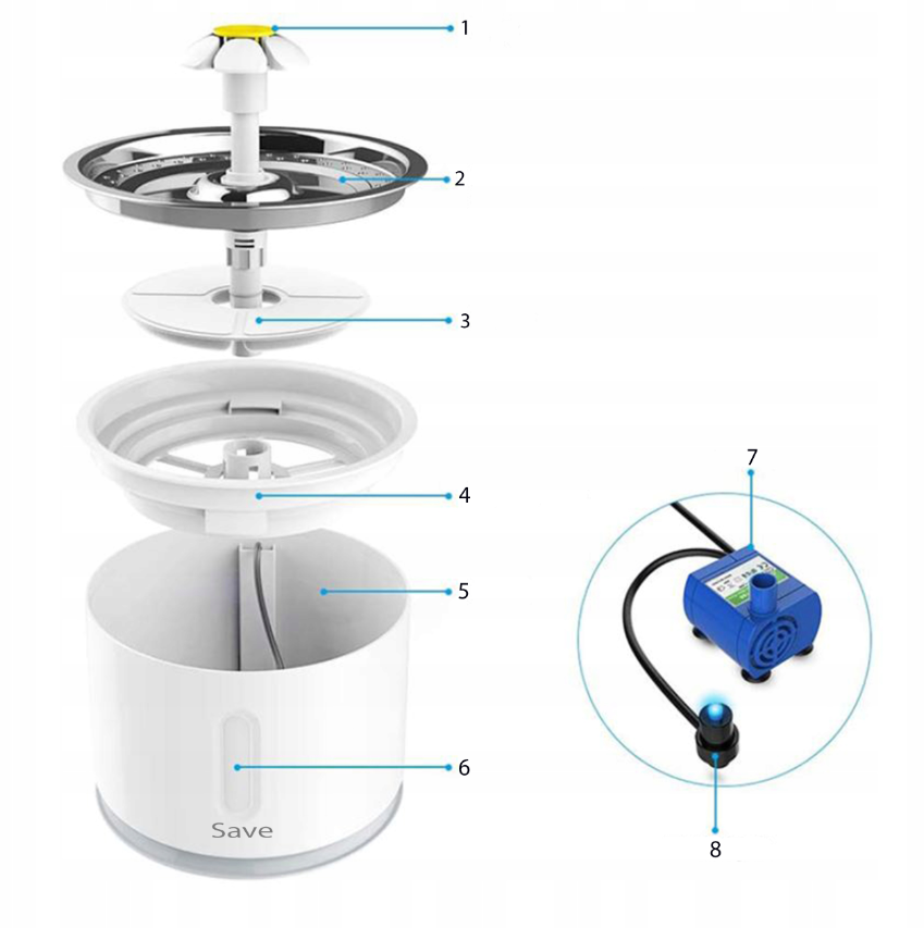 - Automatinis vandens cirkuliavimas – nuolat judantis vanduo skatina gerti dažniau.