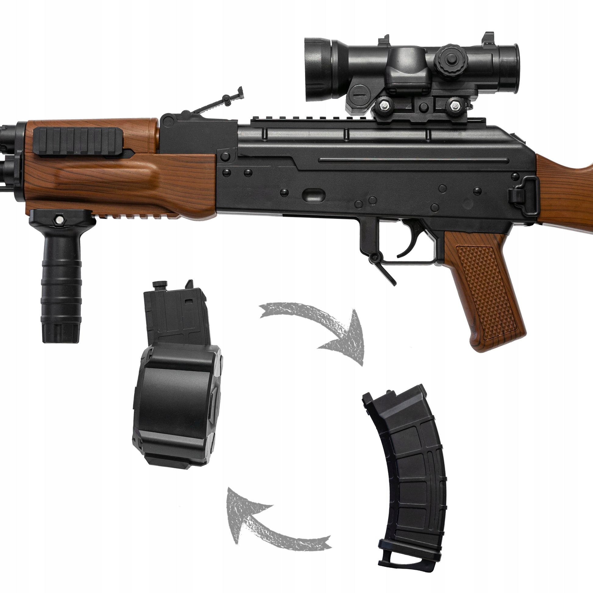 Pasiruoškite nepamirštamiems nuotykiams su mūsų naujuoju automatiniu gelinių kamuoliukų pistoletu, tikslia ir įspūdinga žaislinio ginklo replika. Šis modelis, sukurtas atkartoti didelio dydžio šautuvą, nepalieka abejingų savo funkcionalumu ir autentiška išvaizda. Jo pagrindinis privalumas – visiškai automatinis šaudymo režimas: tiesiog užtaisę gelinius kamuoliukus ir nuspaudę gaiduką, mėgaukitės nepertraukiamu šūvių srautu. Puikiai tinka azartiškiems žaidimams lauke, komandinei veiklai ar tiesiog pramogai siekiant taiklumo.