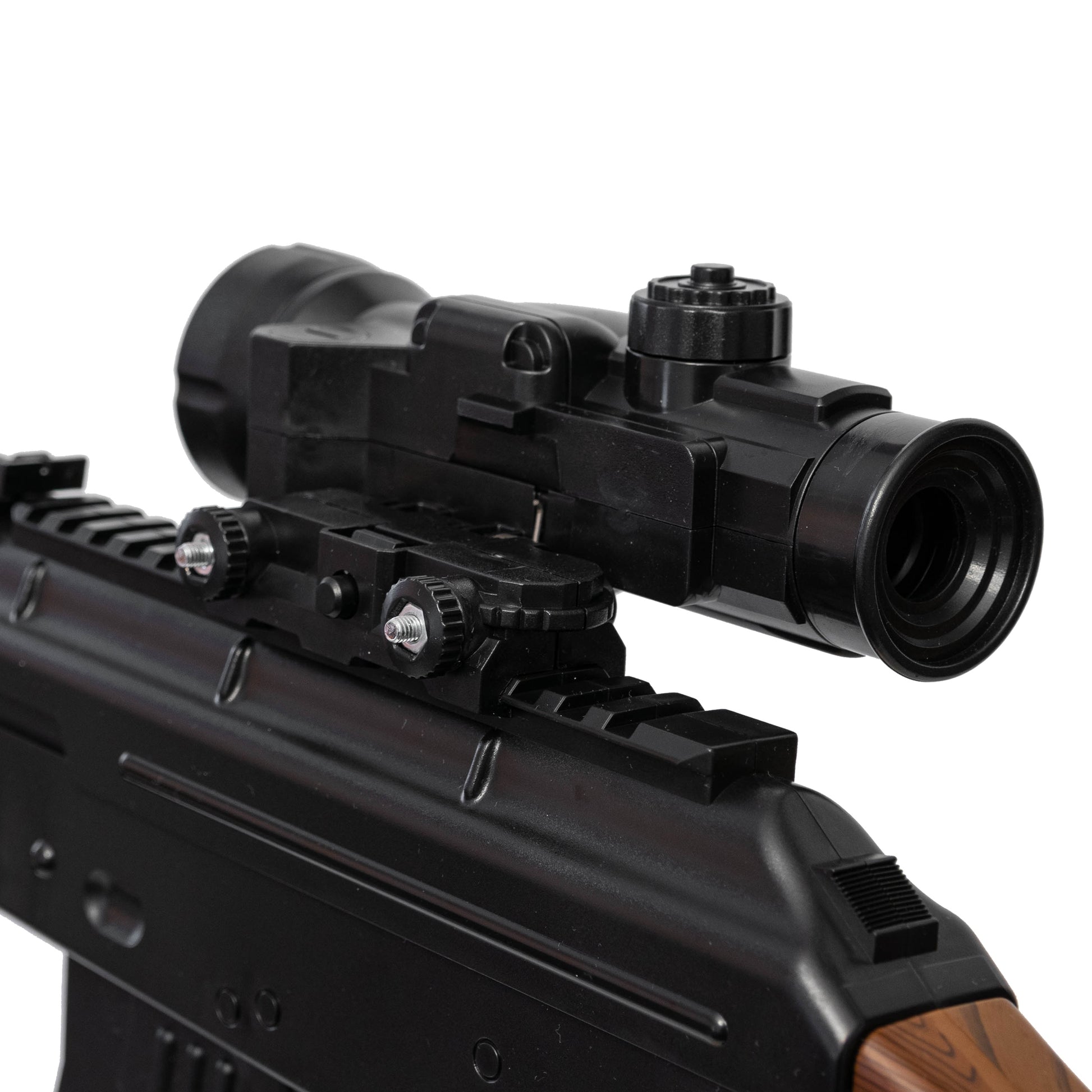 Šis karabinas nepaliks abejingų nei pradedančiųjų, nei patyrusių žaidėjų. Jo dizainas ir valdymas yra intuityvus, o aukštos kokybės ABS plastiko konstrukcija užtikrina ilgaamžiškumą ir patogumą naudojant. Įspūdingas 80 cm ilgis ir 28 cm aukštis suteikia šiam modeliui dar daugiau realistiškumo. Patobulinta pneumatinė sistema leidžia pasiekti iki 40 metrų šaudymo atstumą, o išvadinio greitis siekia apie 200 FPS, garantuojant efektyvius ir tikslius šūvius. Tai ne tik žaislas, bet ir puiki priemonė lavinti reakciją, strateginį mąstymą ir komandinį darbą.