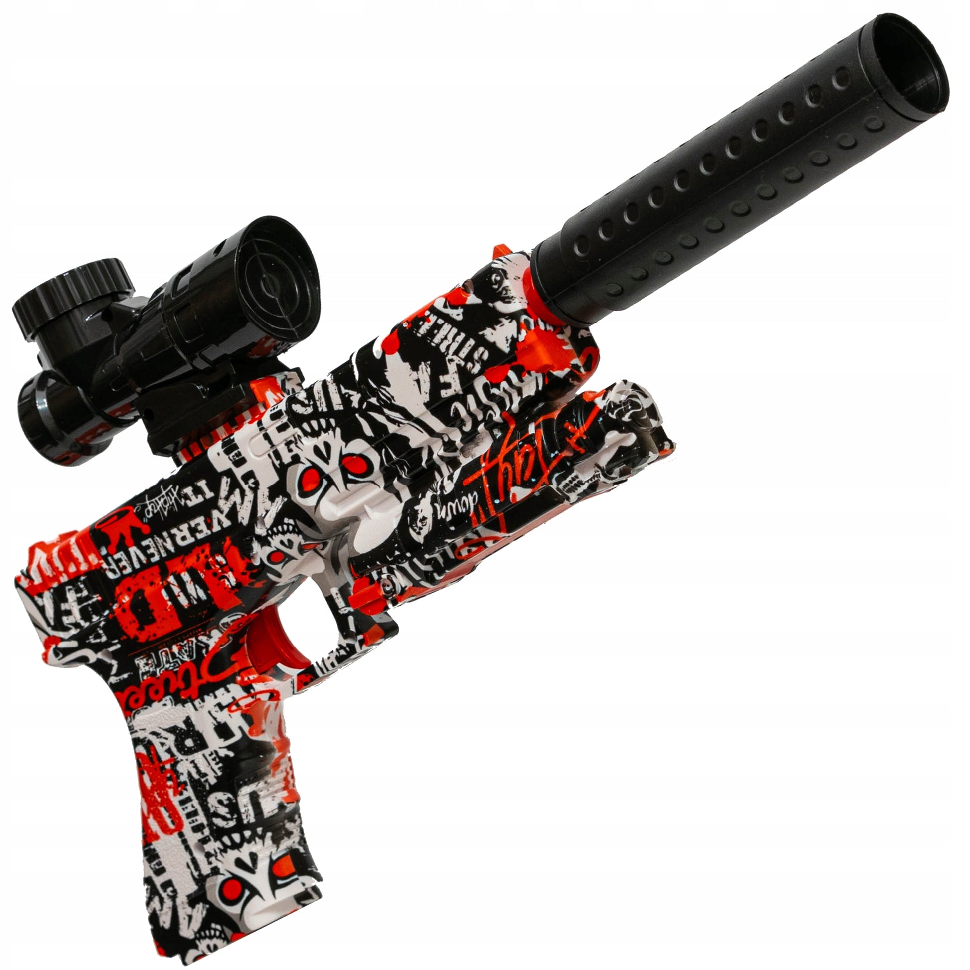 Automatinis pistoletas gelio rutuliukams su duslintuvu vandens rutuliukams