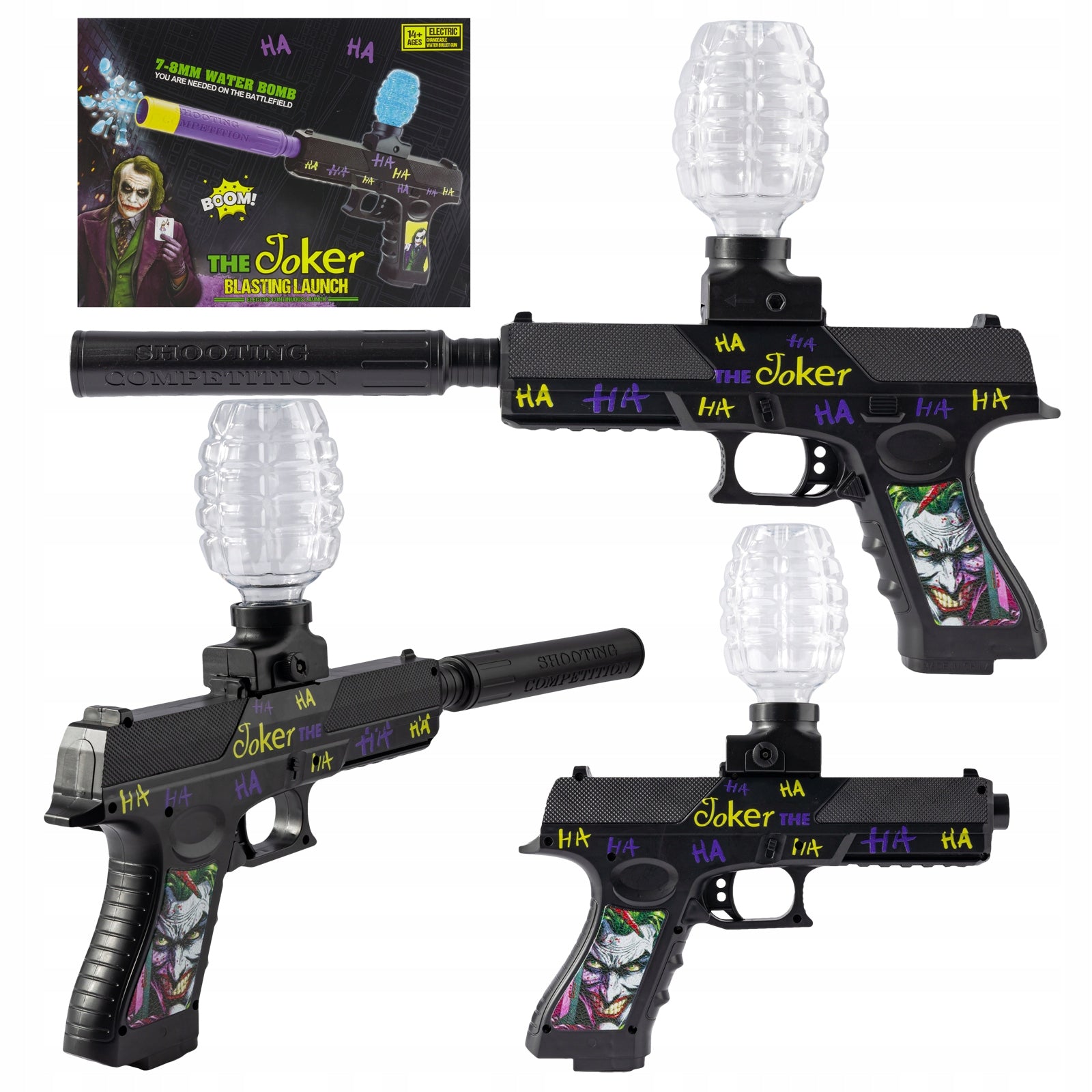 JOKER gelinių kamuoliukų pistoletas parduodamas pilnai paruoštas žaidimui, įskaitant visas reikalingas dalis ir priedus. Jums tereikės pasiruošti gelinius kamuoliukus, kurie paruošiami labai paprastai: užpildžius konteinerį kamuoliukais, juos reikia užpilti vandeniu (apie 300 ml) ir palaukti 3 valandas. Po to jie yra visiškai paruošti naudojimui. Tai ne tik patogumas, bet ir saugumo garantas.
