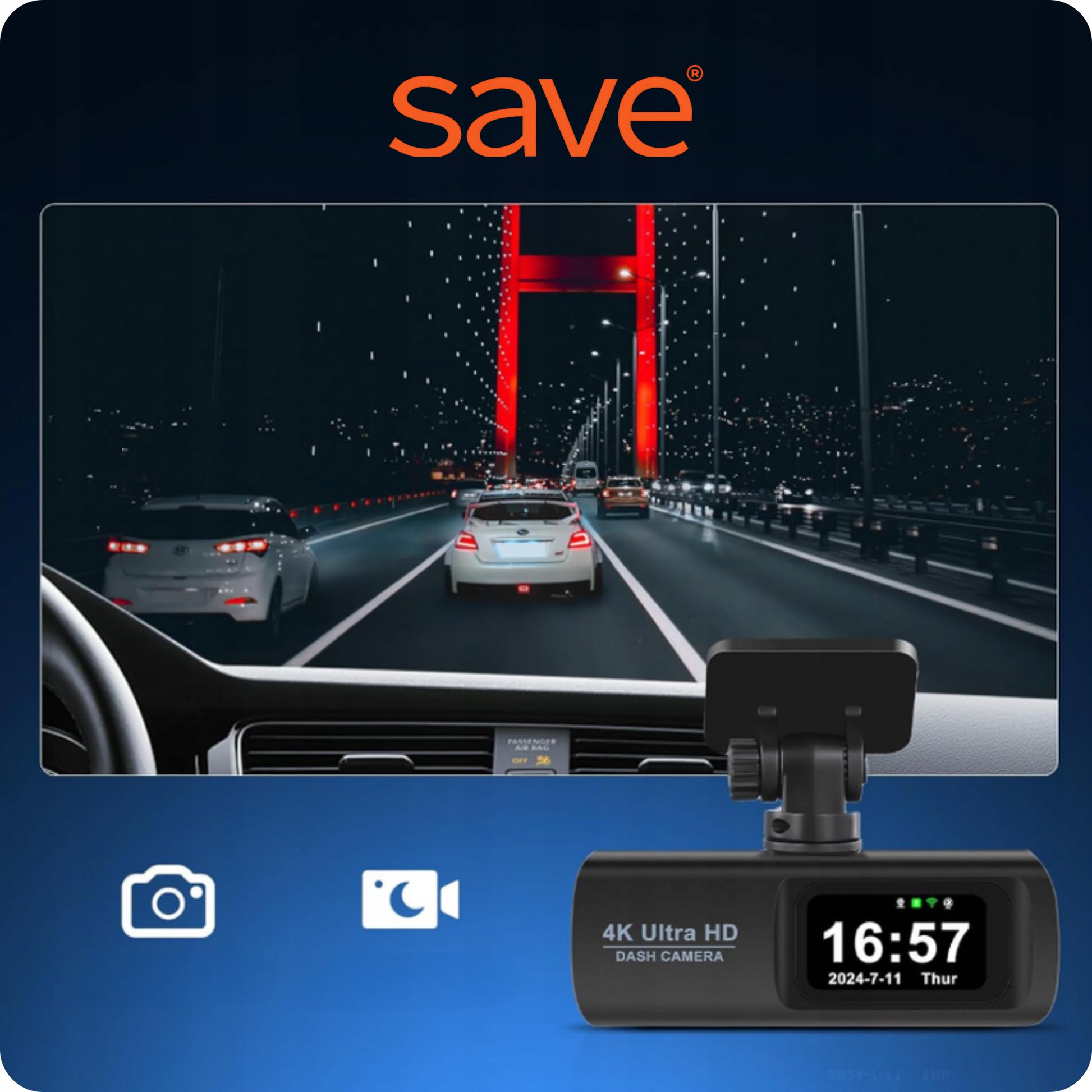 Su "SAVE S-700 4K" Jūsų automobilis bus aprūpintas pažangiausia technologija, kuri apsaugos Jus įvairiose situacijose. Įmontuotas judesio detektorius automatiškai pradeda įrašymą, aptikęs judesį šalia Jūsų stovinčio automobilio, o G-sensorius (smūgio jutiklis) akimirksniu išsaugo įrašą kritiniais momentais – staigaus stabdymo, susidūrimo ar vibracijos metu. Integruotas mikrofonas įrašo ir garsą, suteikdamas pilną vaizdo įrodymą. Šios funkcijos užtikrina, kad net ir Jums nesant automobilyje, įvykis bus užfiksuotas, o potencialūs pažeidėjai bus lengvai atpažinti.