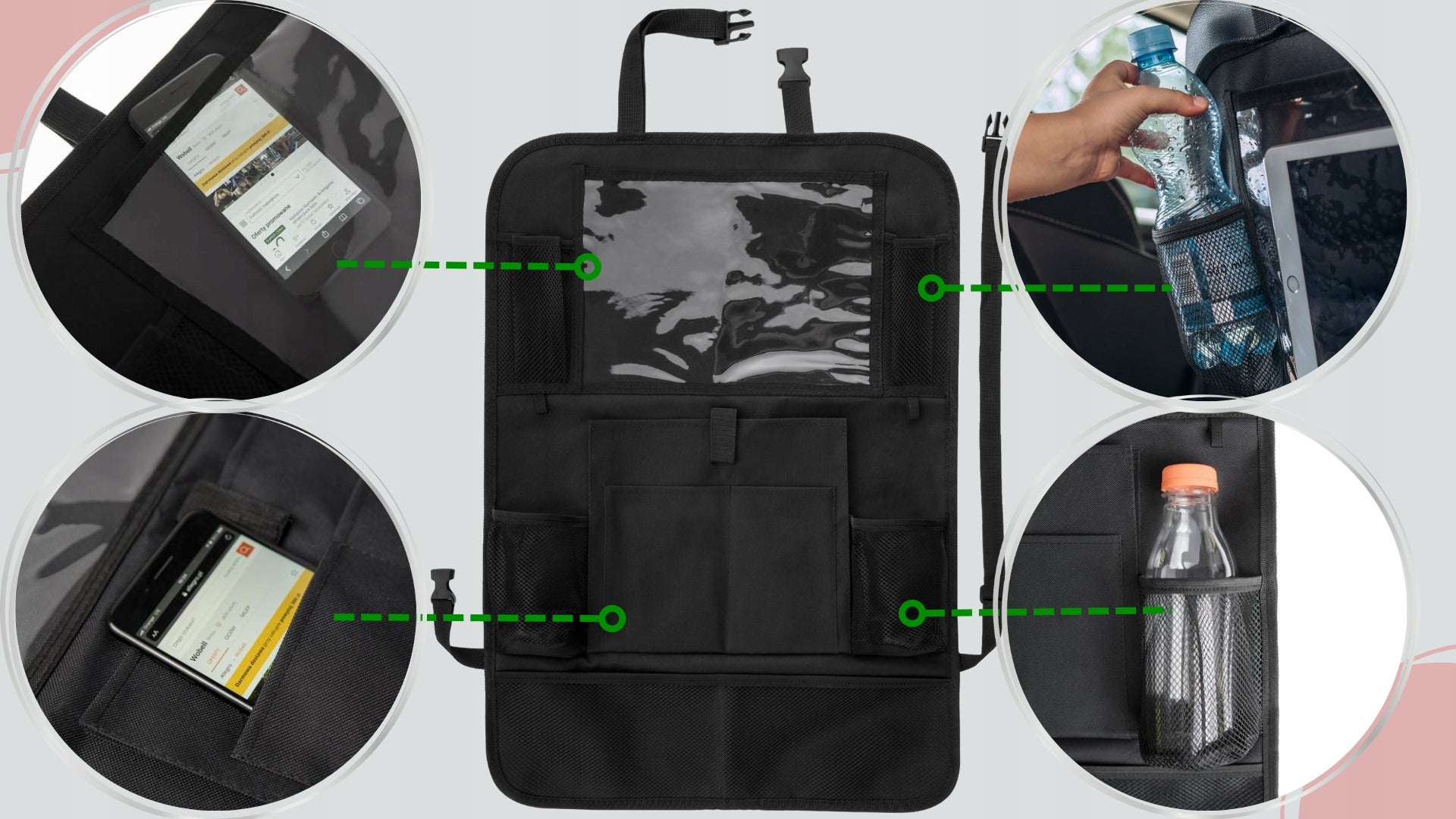 Ar pavargote nuo netvarkos automobilio gale? Kelionės su vaikais dažnai reiškia žaislų, knygų, maisto pakuočių ir kitų smulkių daiktų chaosą? Pristatome Wobell automobilinį organizatorių ant galinės sėdynės – nepakeičiamą pagalbininką, kuris padės palaikyti tvarką ir užtikrins didesnį komfortą kelionių metu. Jo universalus dizainas ir daugiafunkcionalumas daro jį idealiu sprendimu kiekvienai šeimai, vertinančiai švarą ir organizuotumą. Pagamintas iš aukštos kokybės, vandeniui atsparių ir lengvai valomų medžiagų (95% poliesterio, 5% PVC), šis organizatorius tarnaus ilgus metus, apsaugodamas jūsų automobilio sėdynes nuo nešvarumų ir dėvėjimosi.
