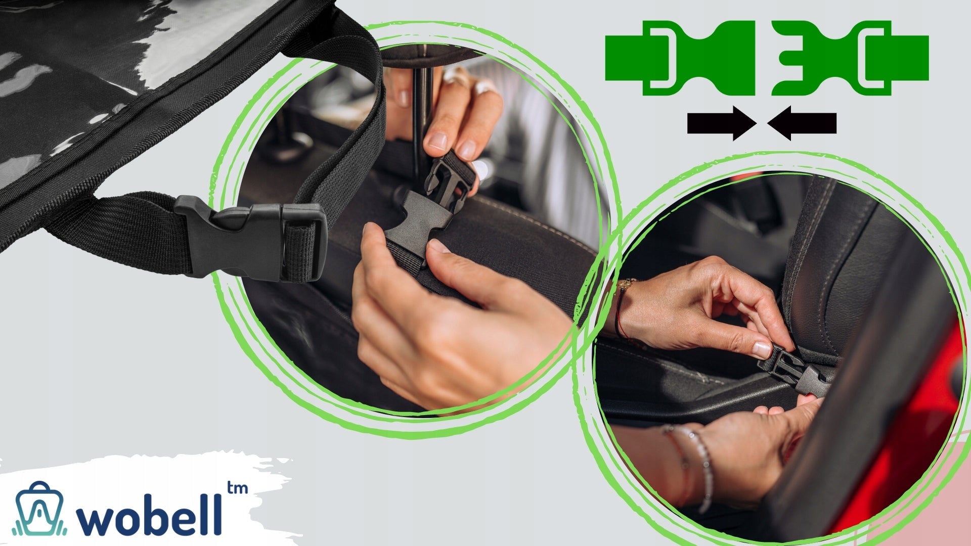 Pakuotėje rasite vieną Wobell automobilinį organizatorių ant galinės sėdynės. Visi pavaizduoti priedai ar daiktai (planšetė, gėrimai, žaislai) yra skirti tik demonstraciniams tikslams ir į komplektaciją neįeina.