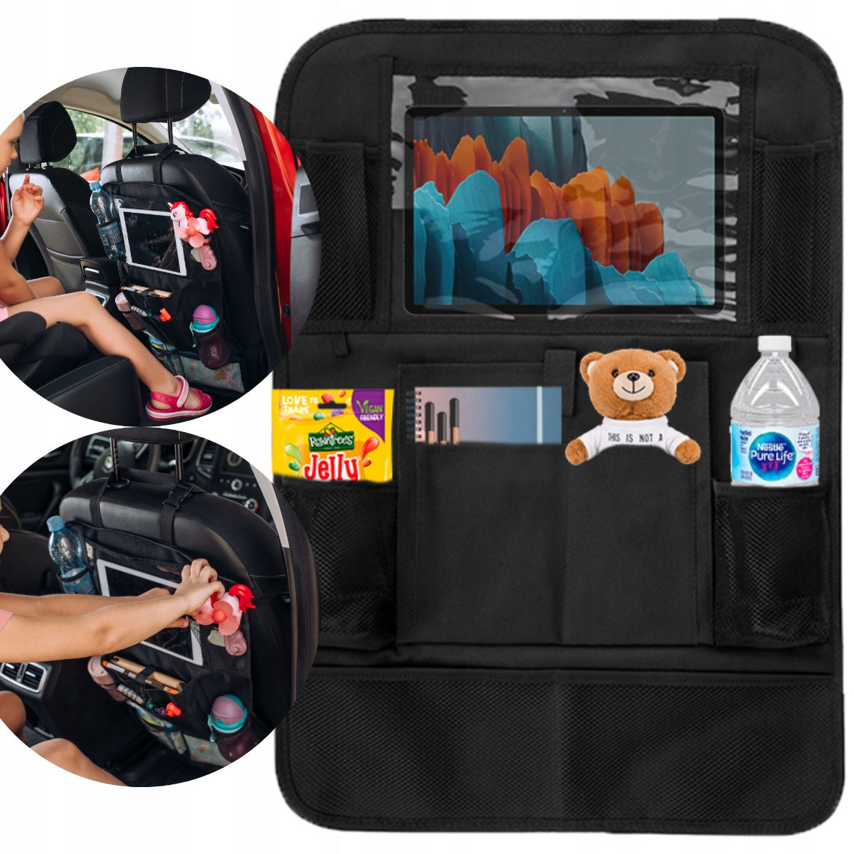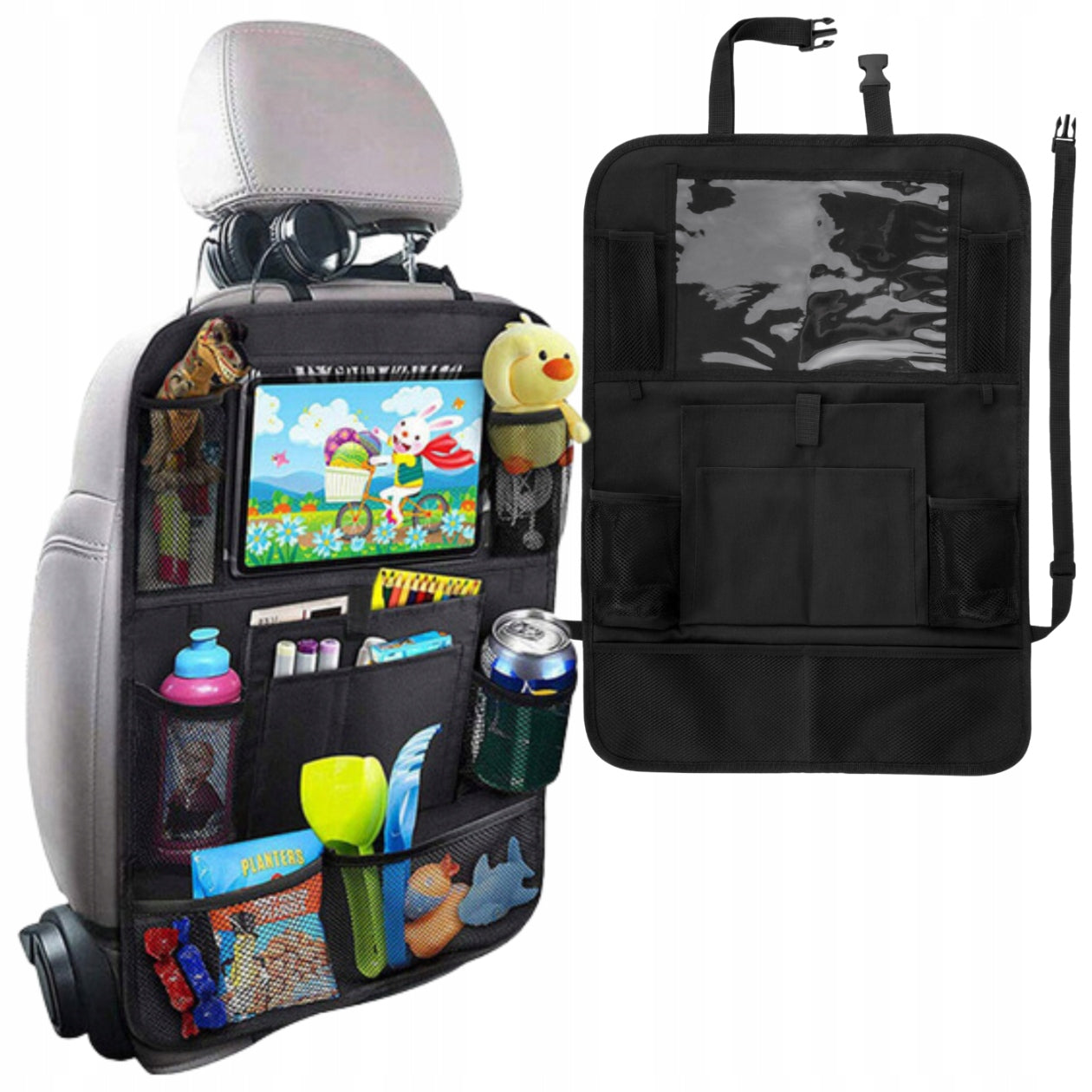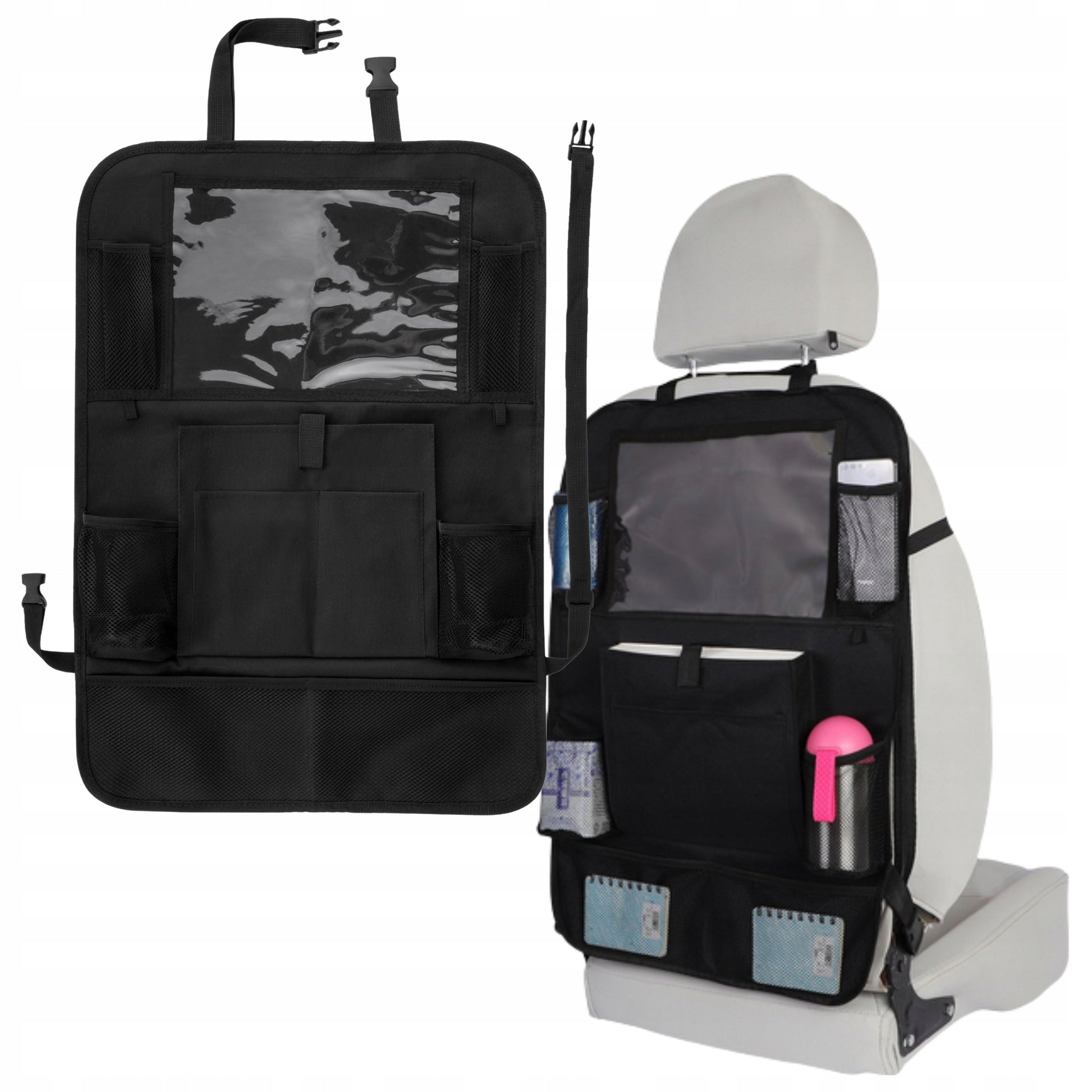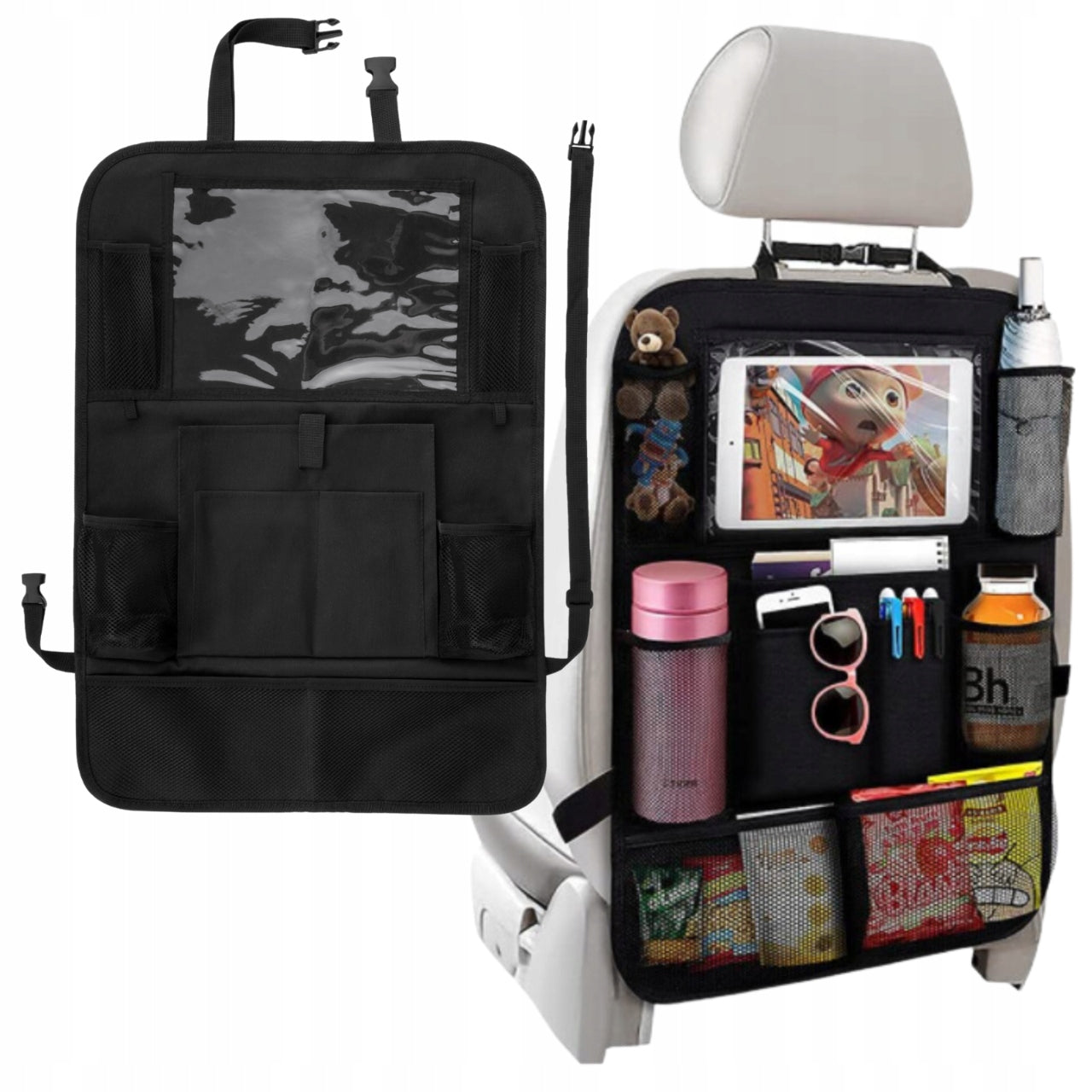 Šis organizatorius sukurtas universaliai, todėl puikiai tiks beveik visiems automobilių modeliams. Jo montavimas yra itin paprastas ir greitas – tiesiog pritvirtinkite dirželius aplink galvos atramą ir sėdynės apatinę dalį. Reguliuojami dirželiai leidžia užtikrinti tvirtą ir stabilų organizatoriaus laikymąsi prie sėdynės, net ir važiuojant nelygiais keliais. Dėl specialiai parinktų medžiagų, šį organizatorių itin lengva prižiūrėti – daugumą dėmių pakanka nuvalyti drėgna šluoste ar servetėle.
