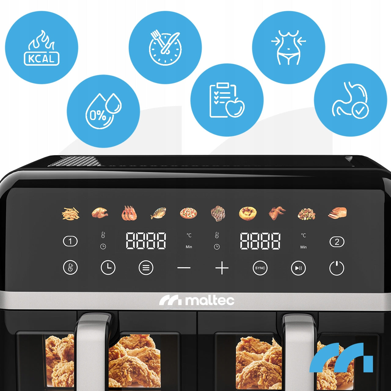- Bebaltė gruzdintuvė MalTec AirFryer 2800W-10L su dviguba kamera