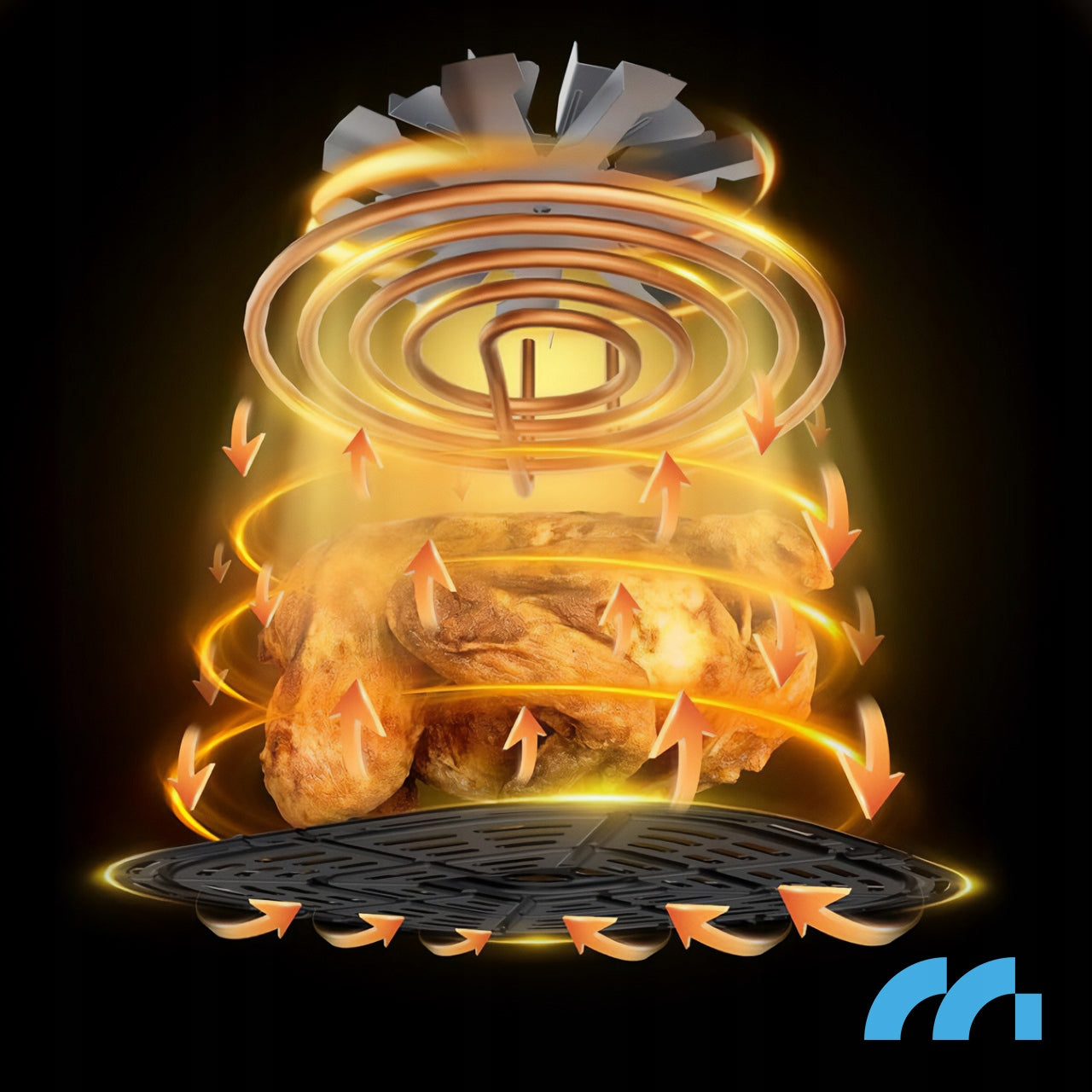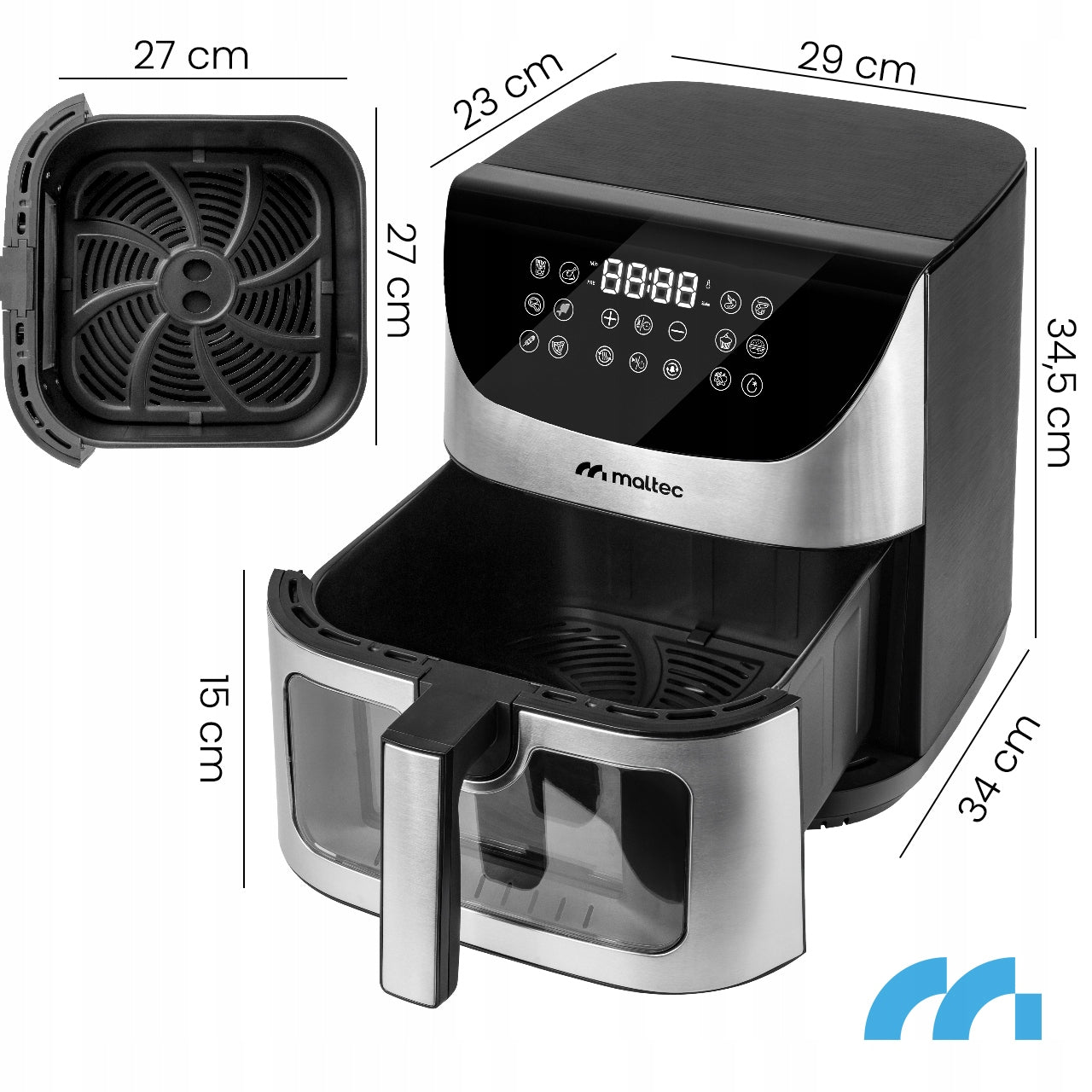 Susipažinkite su revoliuciniu būdu gaminti maistą namuose – didelės talpos (9 litrų) be-riebalinė gruzdintuvė „Air Fryer MalTec“ su galinga 1800W galia. Šis prietaisas ne tik leis jums mėgautis mėgstamais traškiais patiekalais su minimaliu aliejaus kiekiu arba be jo visiškai, bet ir suteiks galimybę kepti, skrudinti, troškinti ir net kepti pyragus. Jos pažangi karšto oro cirkuliacijos technologija užtikrina tolygų maisto paruošimą, išlaikant sultingumą ir traškumą. Modernus LED lietimui jautrus ekranas ir 12 automatinių programų padarys maisto gaminimą paprastu ir maloniu net pradedantiesiems.