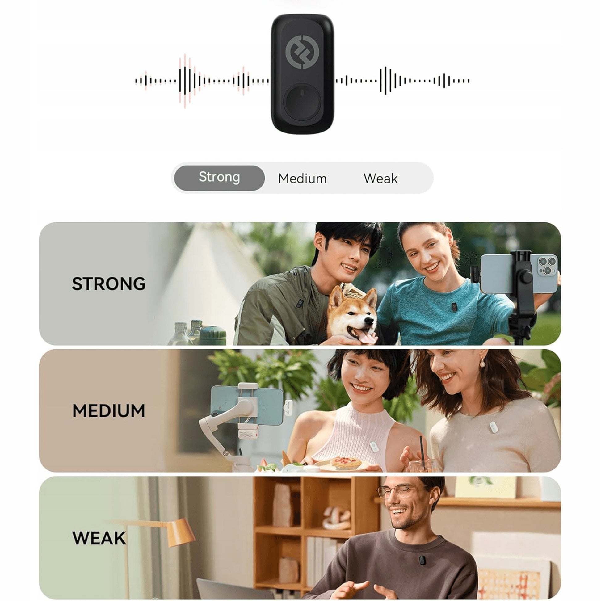 Pasinerkite į garso personalizavimą su „Hollyland LARK A1“. Integruotas 3 pakopų ekvalaizeris (EQ) leidžia pasirinkti tarp „balanso“, „žemo“ ar „ryškaus“ garso profilio, pritaikant jį skirtingoms situacijoms – nuo natūralaus balso iki sustiprintų žemų dažnių podkastams. Trys pogarsio (reverb) režimai – mažas, vidutinis ir didelis – suteikia galimybę simuliuoti skirtingas erdves, sukuriant gilų ir erdvinį garsą, idealiai tinkantį ASMR įrašams ar dramatiškiems pasakojimams. Tai tarsi studija jūsų kišenėje.