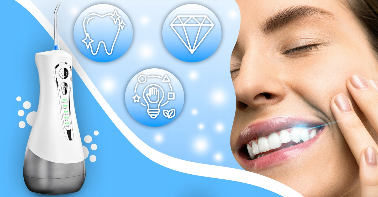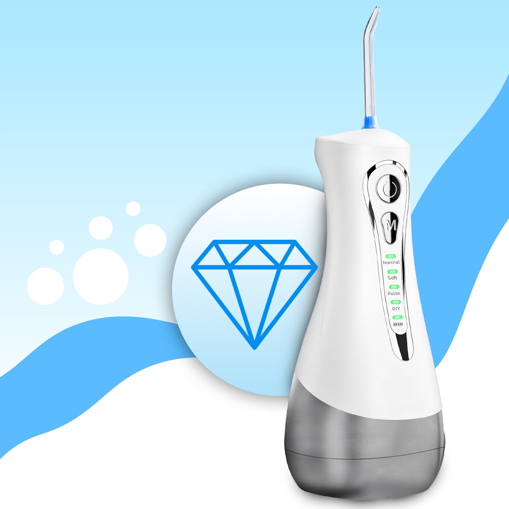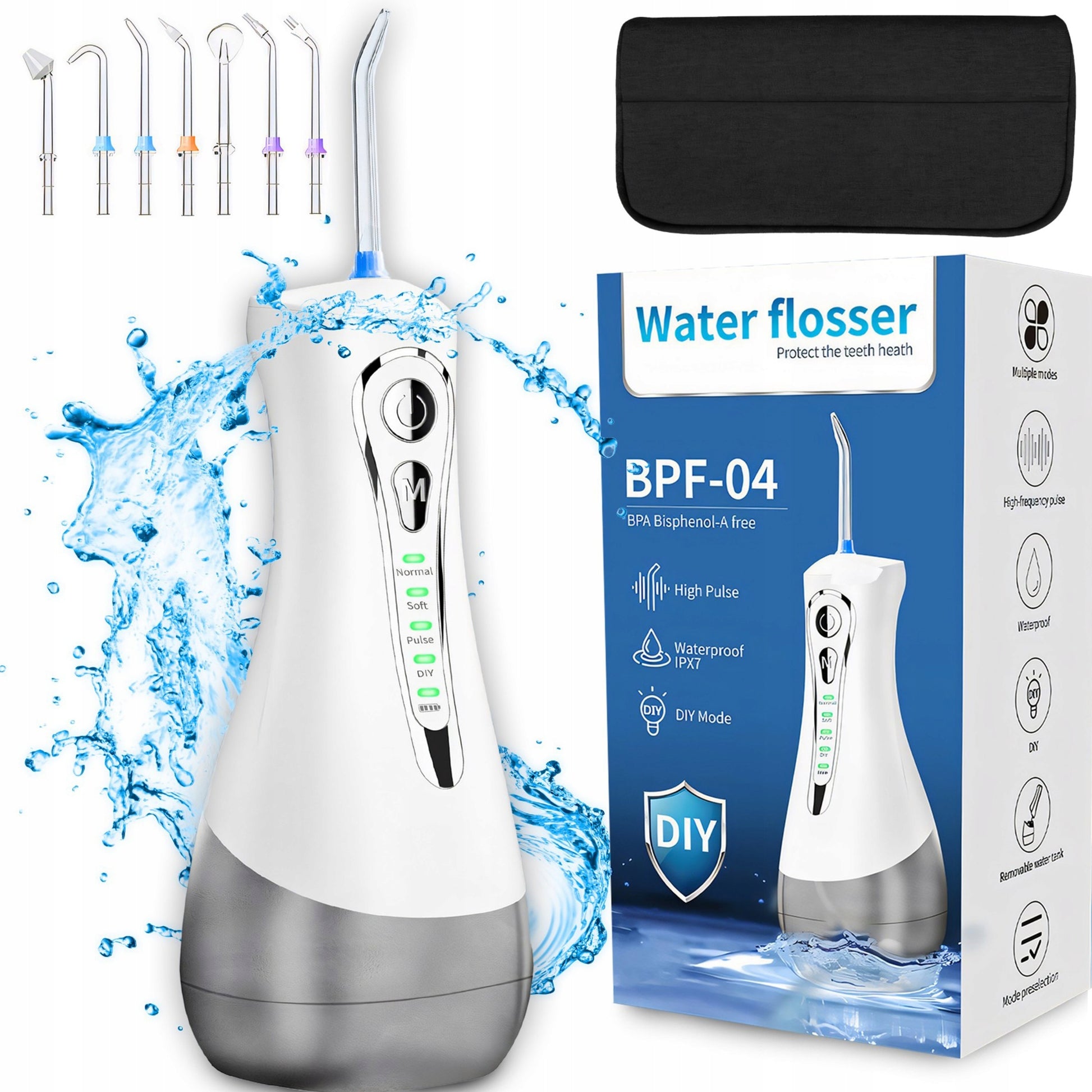 Belaidis profesionalus dantų irigatorius, 4 režimai, dėklas, 7 antgaliai, 300 ml