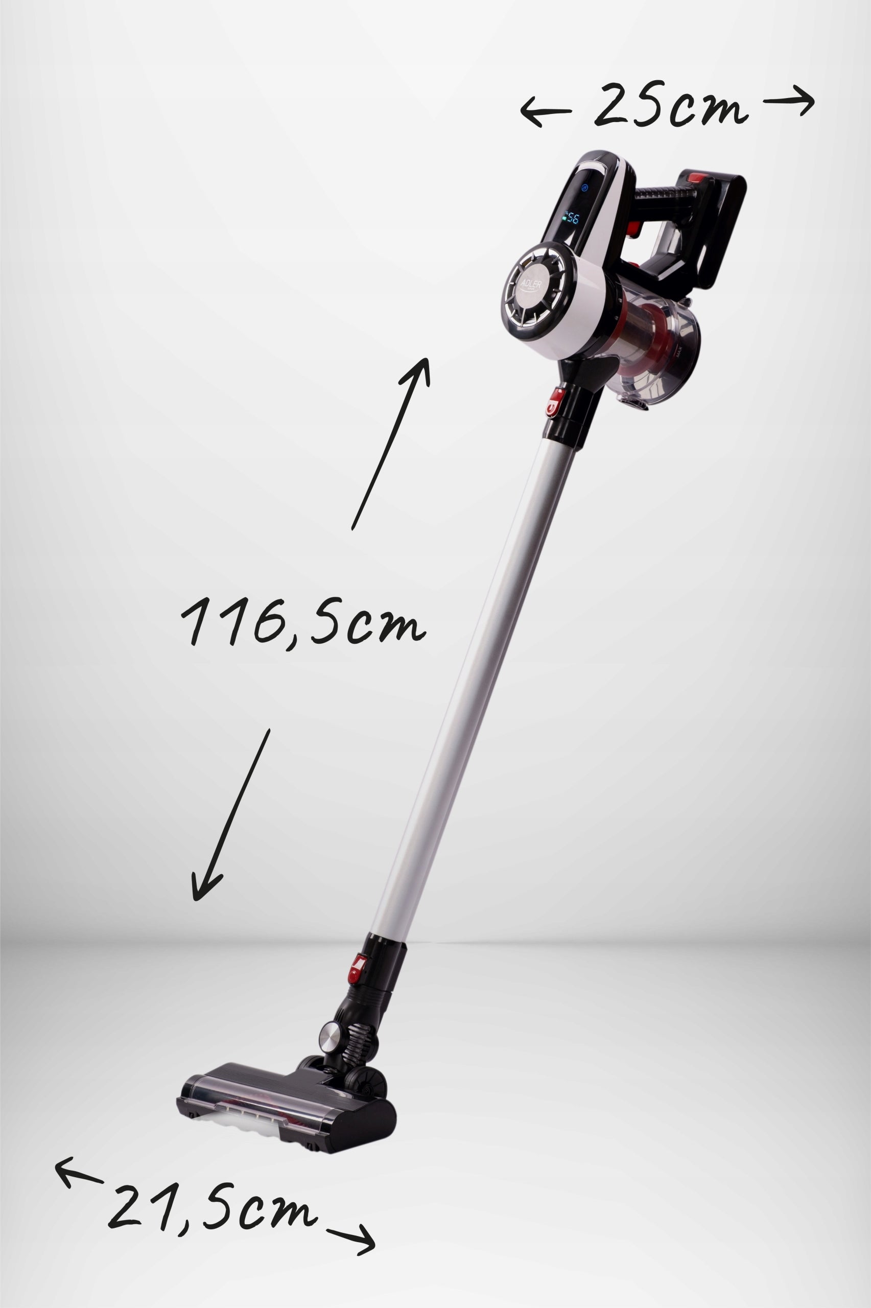 Šis dulkių siurblys pasižymi ne tik belaidžio prietaiso patogumu, bet ir išskirtine siurbimo galia, siekiančia iki 18 000 Pa. Naujoviškas, bešepetėlis (brushless) 350W variklis užtikrina pastovią trauką net ilgai siurbiant, yra kur kas patvaresnis ir tyliau veikiantis nei tradiciniai varikliai. Dėl bemašės sistemos nebereikės rūpintis filtrų keitimu ar papildomomis išlaidomis maišeliams. Dulkių surinkimo indas lengvai ištuštinamas, o DUAL CYCLONE filtravimo sistema kartu su EPA11 filtru efektyviai sulaiko net smulkiausius dulkių ir alergenų pėdsakus, todėl Jūsų namuose bus ne tik švaru, bet ir sveikesnis oras.