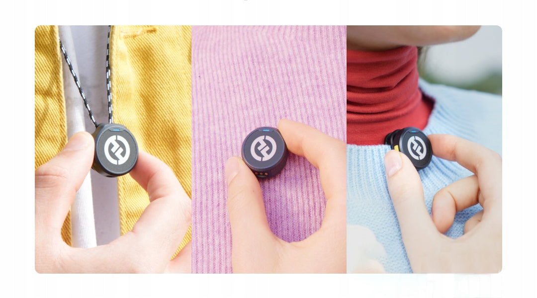- Kompaktiškumas ir lengvumas: Siųstuvai sveria vos 9 g, todėl yra beveik nepastebimi ant drabužių ir itin patogūs nešioti.
