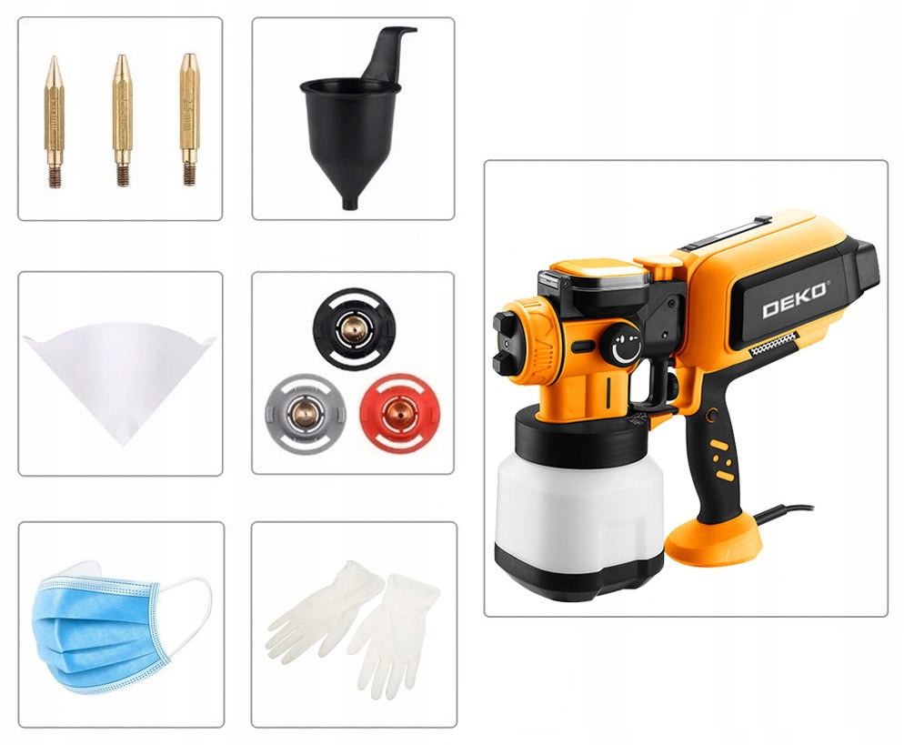 Šis XXL rinkinys sukurtas taip, kad suteiktų jums viską, ko reikia iškart pradėti darbą. Pistoletas DEKO DKSG60K2 pristatomas su visais būtinais priedais: trimis keičiamais purkštukais skirtingiems dažymo užduotims, matavimo taurele skysčio klampumui nustatyti, talpiu 1200 ml dažų rezervuaru ir papildomomis adatomis purkštukams. Rinkinys taip pat papildytas vienkartine kauke ir pirštinėmis, užtikrinančiomis jūsų saugumą ir higieną darbo metu. Viskas supakuota taip, kad pasiektų jus saugiai ir būtų paruošta naudoti nedelsiant.