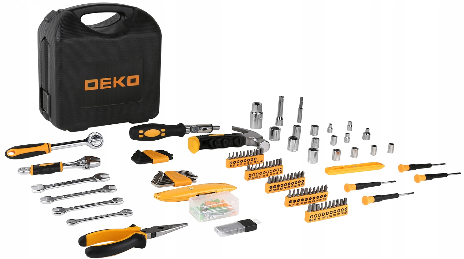 165 dalių įrankių komplektas tvirtame lagamine "Deko"