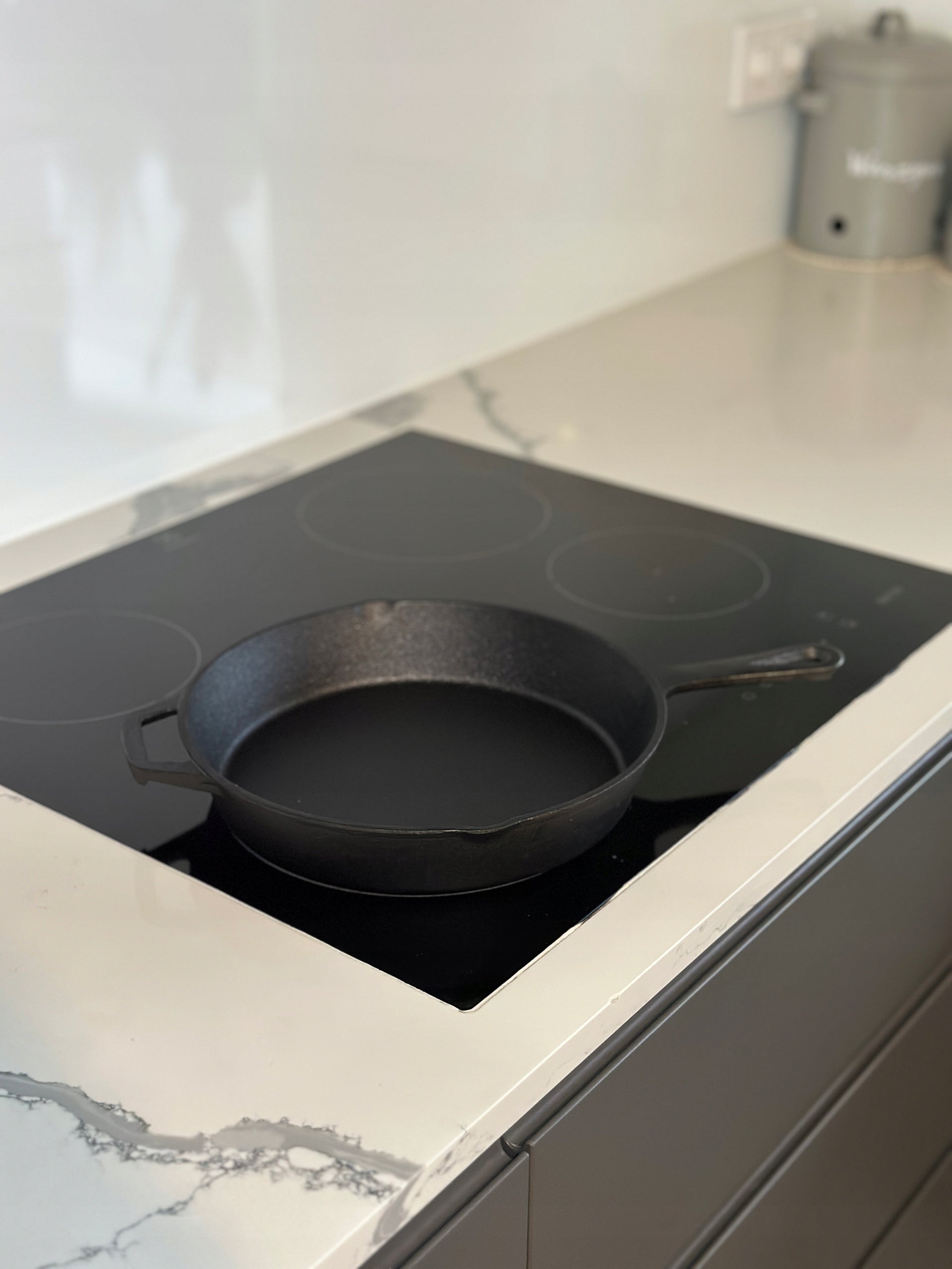 - Pradinis valymas: Nuplaukite keptuvę karštu vandeniu su šiek tiek muilo (muilą naudokite tik šio pirmojo valymo metu ar sezonavimo metu). Kruopščiai iššveiskite, nuskalaukite ir nusausinkite.