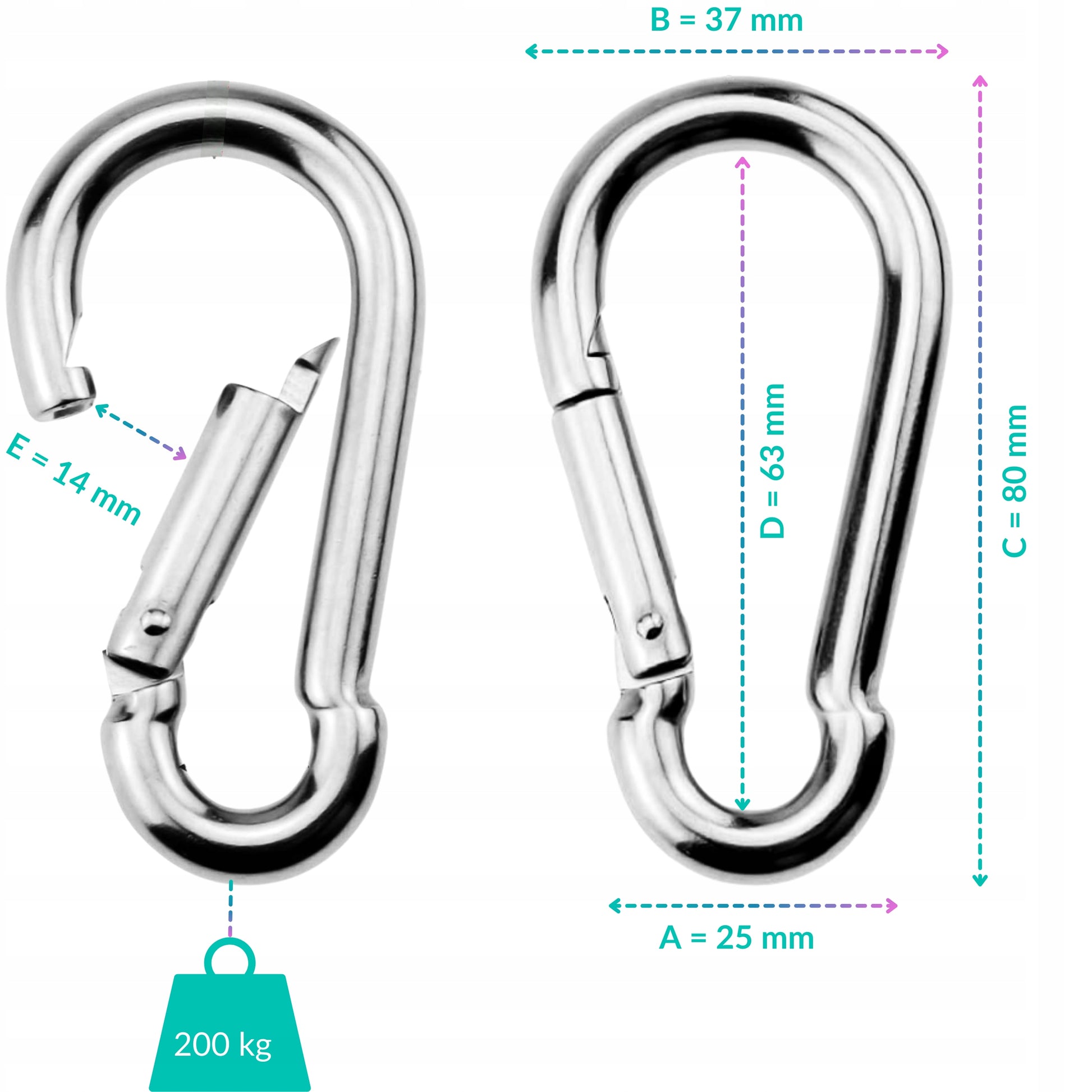 - Tvirtas ir ilgas grandinės ir karabinų komplektas: 80 cm ilgio grandinė ir 8 cm karabinai suteikia patogumo atliekant pratimus, leidžiant laisvai judėti ir optimaliai tvirtinti svorius.