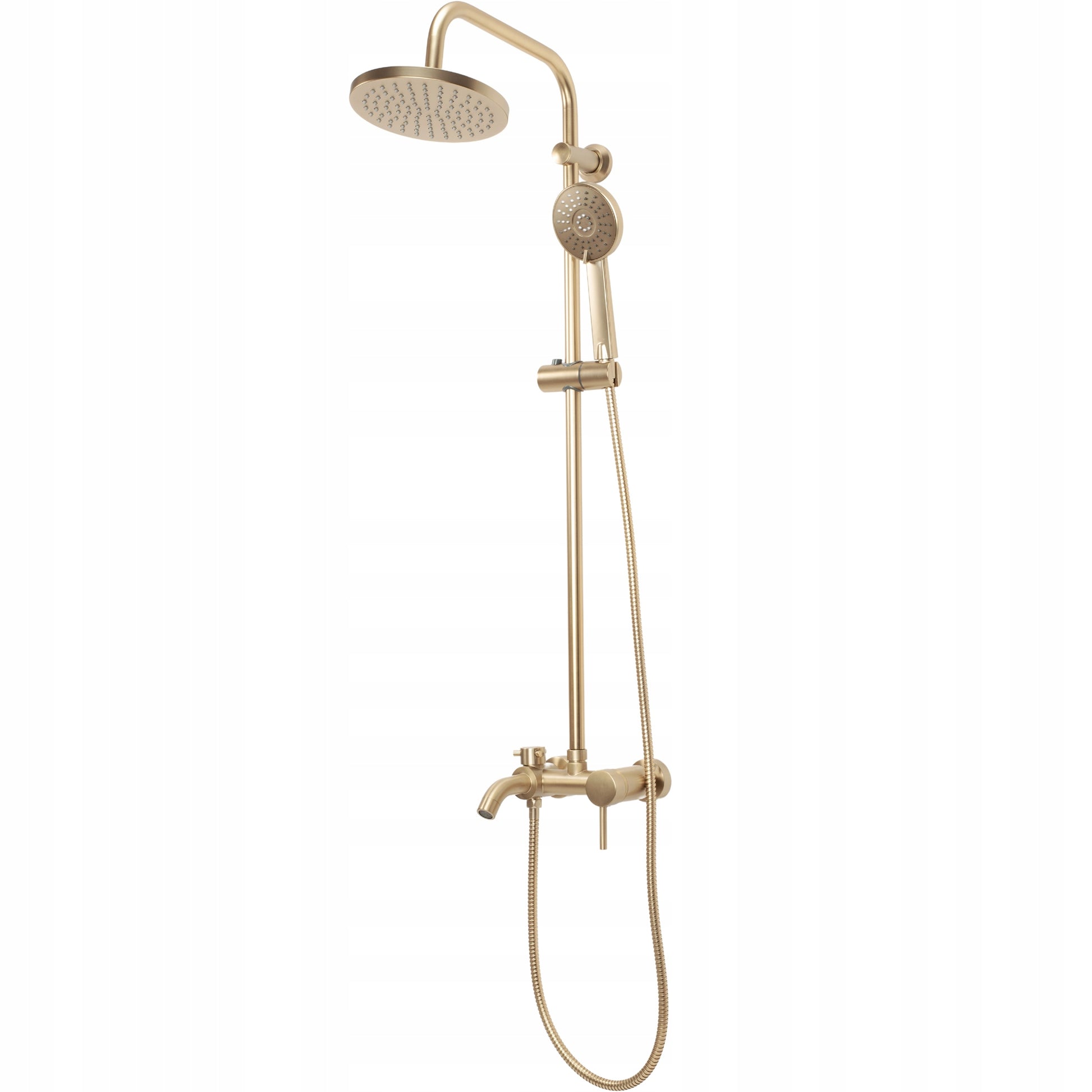 Stilingas ir modernus REA Luis dušo komplektas yra puikus pasirinkimas norintiems suteikti savo vonios kambariui ypatingo žavesio ir funkcionalumo. Elegantiška, šlifuoto aukso spalvos apdaila (Gold Brush) suteikia gaminiui išskirtinumo ir prabangos pojūtį, puikiai derančią prie įvairių interjero dizaino sprendimų. Apvalios formos lietaus dušo galvutė užtikrina platų vandens pasiskirstymą, imituojantį gaivų lietų, todėl kiekviena dušo akimirka taps ramesnė ir malonesnė. Rankinė dušo galvutė leis jums lengvai valdyti vandens srovę ir pasiekti visus norimus kūno taškus. Aukštos kokybės, kruopščiai atrinktos medžiagos garantuoja ilgaamžiškumą, atsparumą dėvėjimuisi ir korozijai, todėl šis dušo komplektas tarnaus jums ilgus metus, išlaikydamas savo nepriekaištingą išvaizdą.