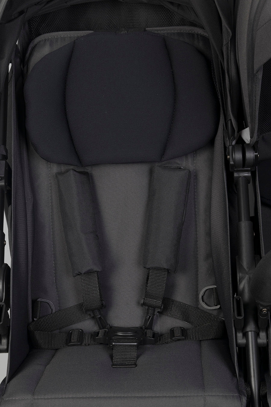 DOBLO IRON vežimėlis pasižymi puikia amortizacija ant visų ratų, todėl kelionės nelygiais paviršiais taps daug komfortiškesnės jūsų vaikams. Priekiniai ratukai yra savaime pasisukantys su galimybe juos užfiksuoti tiesiai, kas užtikrina puikų manevringumą tiek mieste, tiek ilgesnėse kelionėse. Vežimėlio plotis – tik 74 cm, todėl jis lengvai praeina pro daugumą durų. Svarbiausia, kad abu atsisėdimo moduliai yra visiškai nepriklausomi – kiekvienam vaikui galima atskirai reguliuoti atlošą, pakojį ir stogelį, užtikrinant individualų komfortą. Dideli, prailginami stogeliai su UV50+ filtru apsaugos nuo saulės, o papildoma vėdinimo anga užtikrins gerą oro cirkuliaciją.
