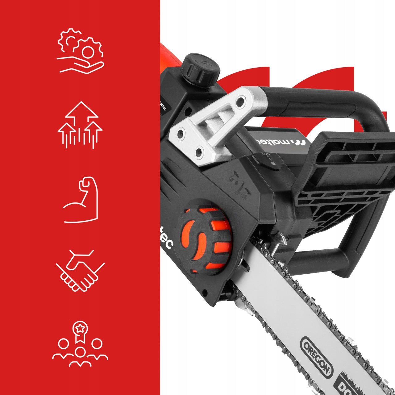 Grandininio pjūklo MalTec MasterCut3550W patikimumą didina jo konstrukcinės savybės. Metalinis pavarų mechanizmas yra žymiai patvaresnis nei plastikinis, užtikrinant ilgesnį tarnavimo laiką ir stabilesnį darbą. Neslystanti, ergonomiška „Soft Grip“ rankena suteikia tvirtą sukibimą ir sumažina rankų nuovargį, leidžiant dirbti ilgiau su didesniu komfortu. Lengvo paleidimo funkcija eliminuoja sunkumų ir vibracijos sukeltus nepatogumus paleidžiant įrenginį, o automatinis grandinės sutepimas palaiko optimalų pjovimo efektyvumą ir prailgina grandinės bei kreipiamosios tarnavimo laiką. Saugos stabdys, aktyvuojamas atatrankos atveju, žymiai sumažina nelaimingų atsitikimų riziką.