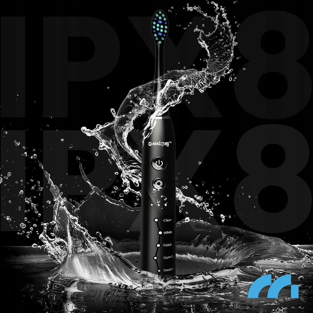 Elektrinis sonic dantų šepetėlis, atsparus vandeniui, su 6 antgaliais ir dėklu.