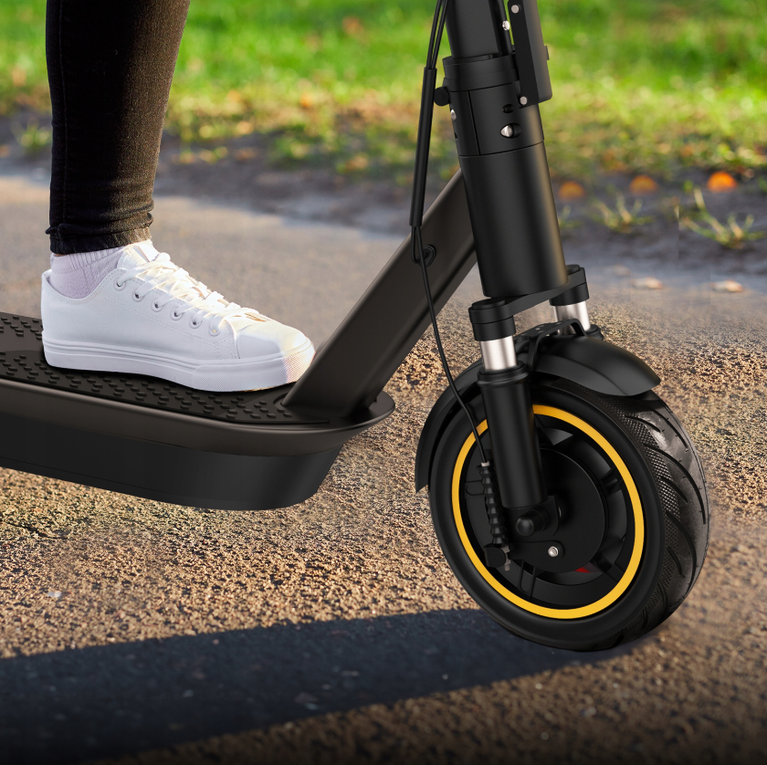 Ratukai: 10 colių ratai – puikus sukibimas ir komfortas net ant nelygaus kelio