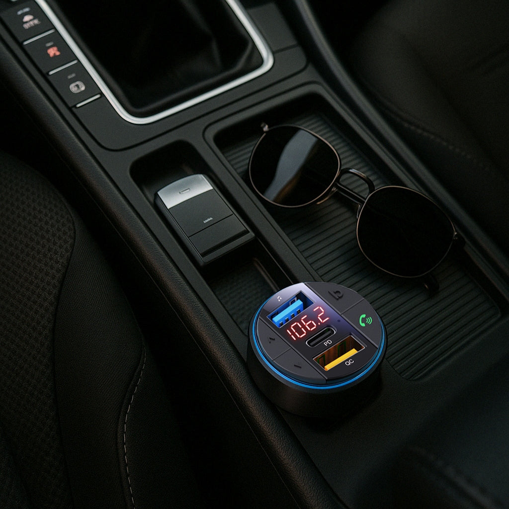 - Daugiafunkcionalumas: Viename įrenginyje sujungtos visos reikalingos funkcijos – FM siųstuvas, Bluetooth laisvų rankų įranga, muzikos grotuvas ir greitas įkroviklis.