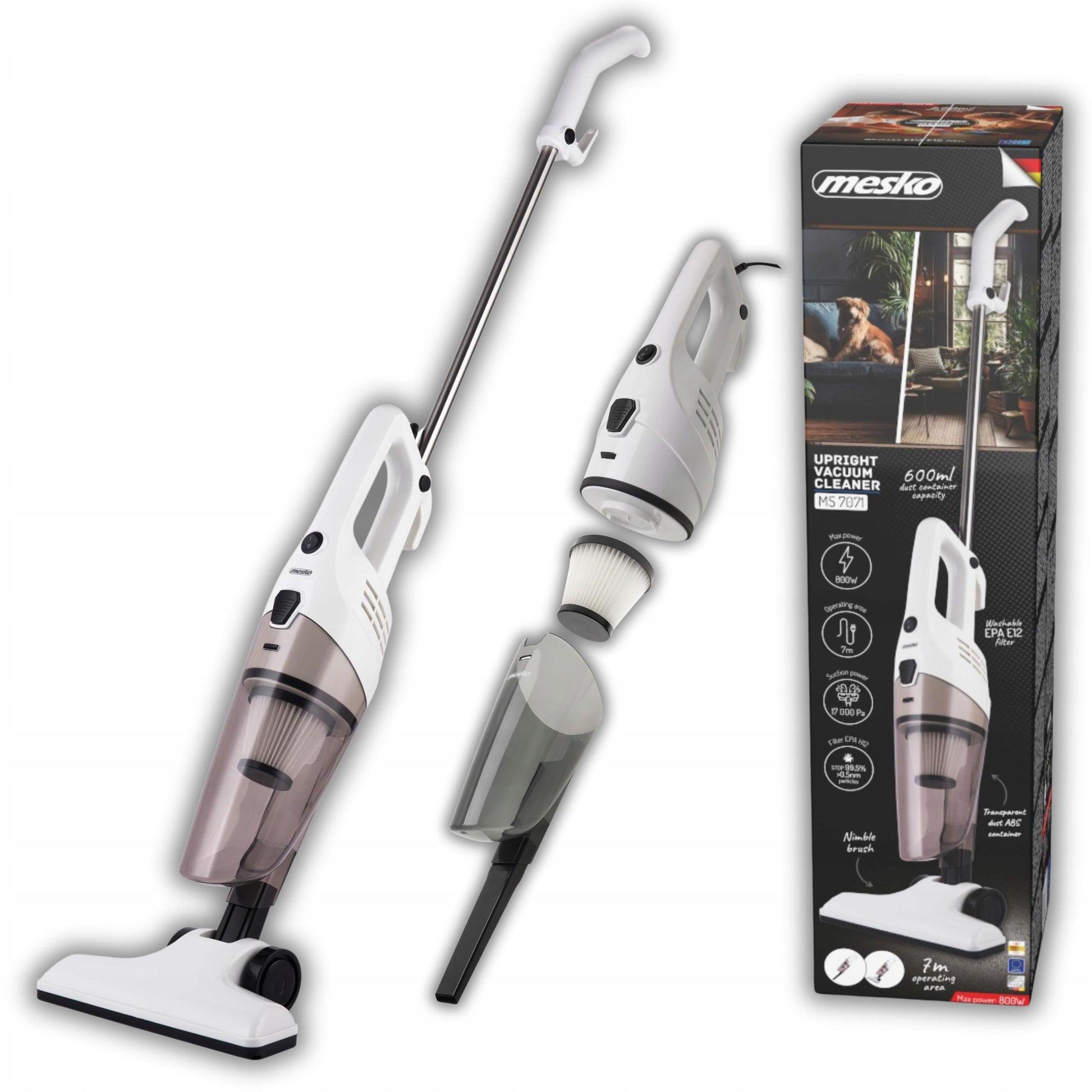 Galingas 17kPa 800W vertikalus dulkių siurblys 2-in-1, su filtru, ilgu laidu, vielinis, rankinis