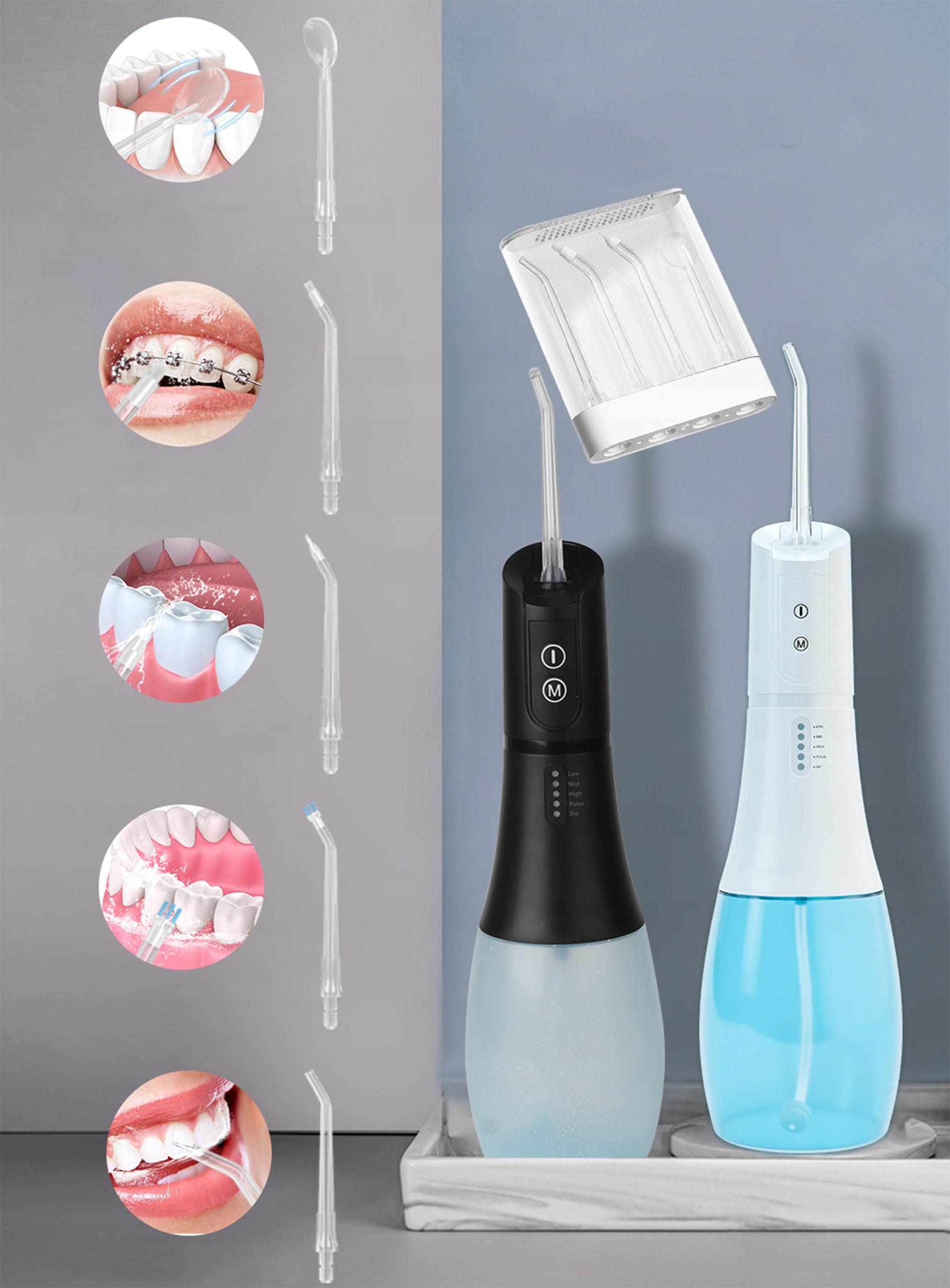 Suteikite savo burnos priežiūrai naują matmenį su šiuo pažangiu belaidžiu irygatoriumi. Sukurtas siekiant užtikrinti nepriekaištingą švarą, jis puikiai tinka kasdienei burnos higienai palaikyti. Su 400 ml vandens talpa ir ilgai veikiančiu 2500 mAh akumuliatoriumi, galėsite mėgautis iki 12 savaičių naudojimo be papildomo įkrovimo (naudojant du kartus per dieną po 2 minutes). Irygatorius pasižymi penkiais skirtingais darbo režimais ir šešiomis keičiamomis 360° besisukančiomis antgaliais, todėl pasieksite net sunkiausiai prieinamas vietas. Dėl IPX7 atsparumo vandeniui, jį saugu naudoti net drėgnomis sąlygomis, o komplekte esantis dėklas palengvina keliones.