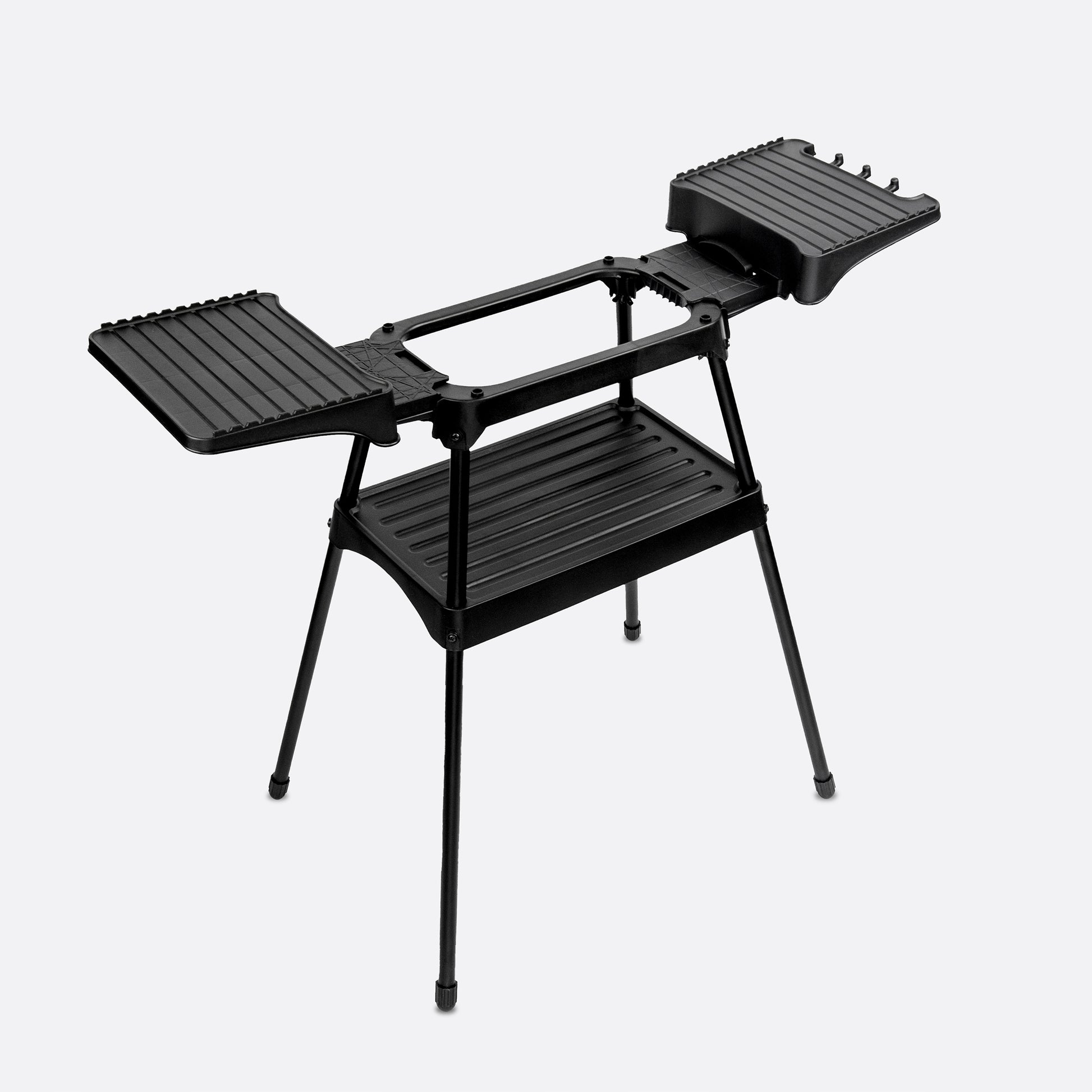 - Universalus 2-in-1 dizainas: gali būti naudojamas kaip stalo grilius arba pastatomas su kojelėmis, tinkamas tiek vidaus, tiek lauko sąlygoms.