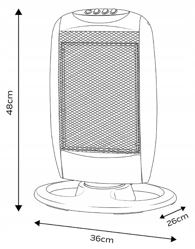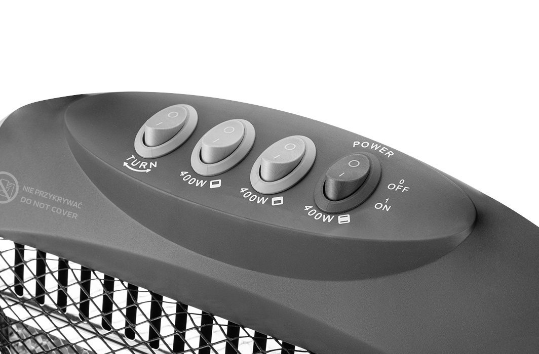 Šis halogeninis šildytuvas – tai efektyvus būdas greitai gauti šilumą ten, kur jos labiausiai reikia. Jame yra trys galios režimai (400, 800 ir 1200 W), jis gali suktis 90 laipsnių kampu ir skleisti šilumą platesniu kampu. Puikiai tinka naudoti terasoje, balkone, sandėlyje arba atvirose patalpose, kur nėra poreikio šildyti visą orą, o tik žmones, objektus.