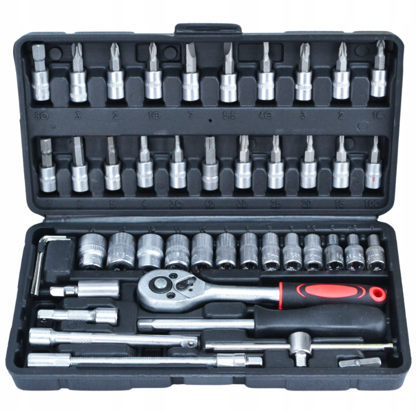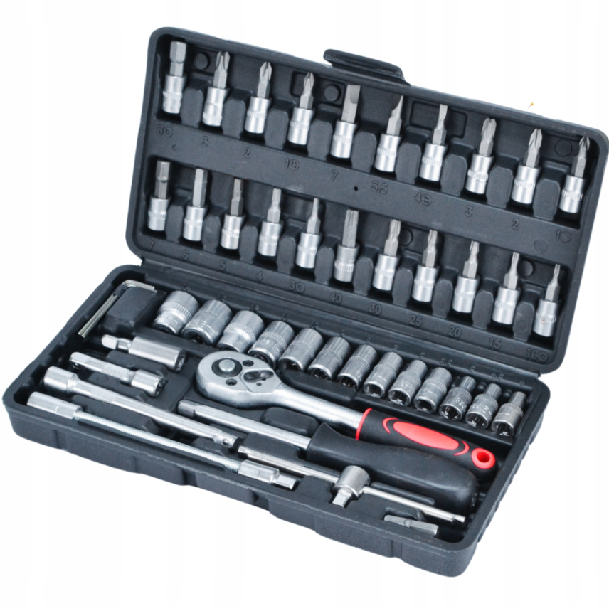 Šis 46 dalių įrankių komplektas – patikimas pasirinkimas tiek kasdieniam naudojimui namuose, tiek automobilio ar kitų mechanizmų remontui. Visi įrankiai supakuoti patogiame lagaminėlyje, todėl juos lengva laikyti tvarkingai ir patogiai transportuoti.