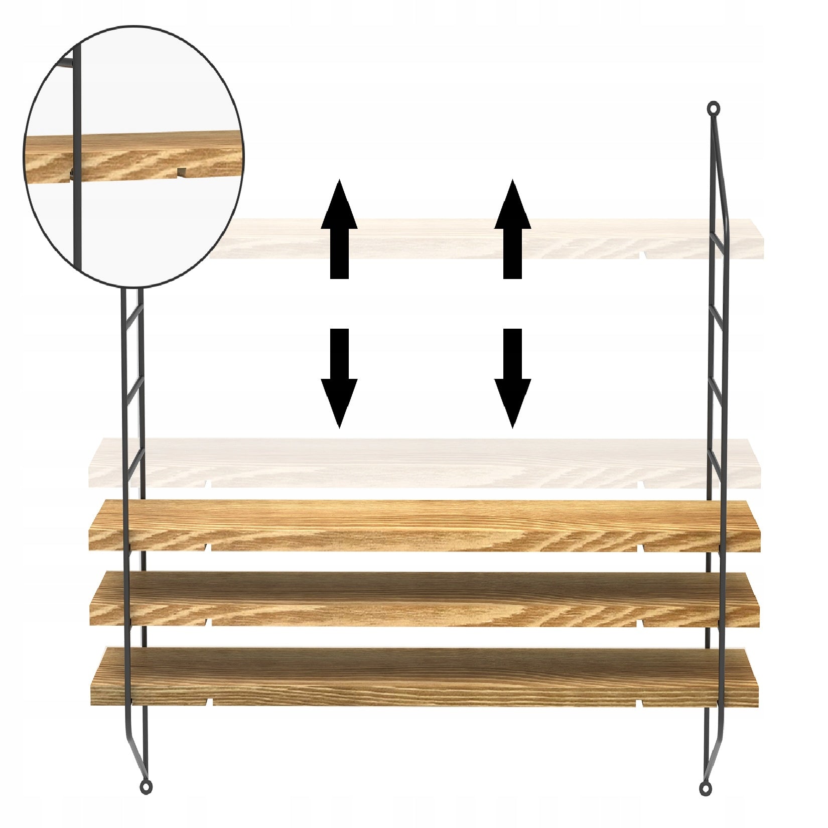 Ši lentyna sukurta atitikti šiuolaikinius dizaino ir funkcionalumo poreikius. Jos stačiakampis formos lentynos su metaliniu karkasu suteikia stabilumo ir ilgaamžiškumo. Specialios grioveliai lentynose užtikrina, kad jos tvirtai laikytųsi ant metalinio rėmo, o tai garantuoja papildomą tvirtumą. Jūs turite galimybę reguliuoti lentynų aukštį pagal savo poreikius, taip pat galite derinti jas skirtingomis kombinacijomis, suteikdami interjerui unikalumo. Jos matmenys (58 x 15 x 54,5 cm) bei kiekvienos lentynos apkrova iki 5 kg leidžia talpiai laikyti įvairius daiktus.