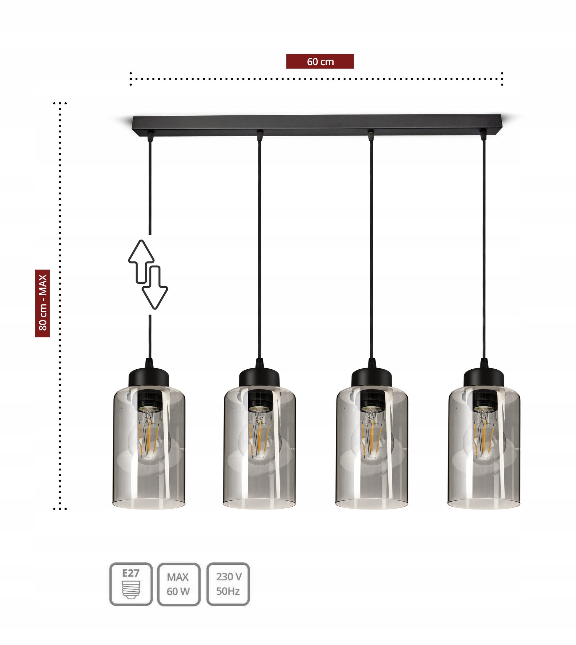 Atnaujinkite savo namų interjerą su modernia pakabinama lubine lempa "Glass Tube". Šis elegantiškas šviestuvas, pasižymintis minimalistiniu dizainu ir juoda, matinio metalo apdaila, puikiai derės prie įvairių stilių – nuo modernaus iki industrinio. Stikliniai, dūminti cilindro formos gaubtai sukuria subtilų ir jaukią atmosferą, sklindant šviesai. Lempa idealiai tinka ne tik kaip pagrindinis apšvietimas, bet ir kaip stilingas interjero elementas, suteikiantis erdvei rafinuotumo. Dėl savo universalumo ir aukštos kokybės ji taps nepakeičiama Jūsų namų dalimi.