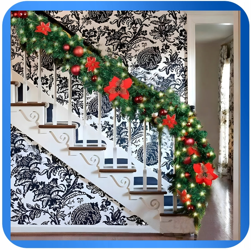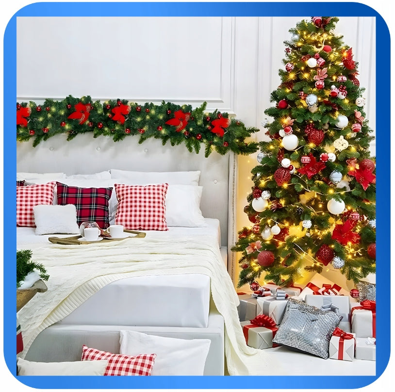 Ši šventinė girlianda suteikia jūsų namams unikalų ir nepamirštamą charakterį. Ji puikiai papildo bet kokią interjero dizaino idėją, tapdama ryškiu akcentu arba subtiliu papildymu. Galite lengvai formuoti ir lenkti girliandos šakeles, sukurdami norimus raštus ar formas – apjuoskite ja duris, langus, veidrodžius, suformuokite puošnų ratą ant sienos ar net papuoškite stalą. Jos universalumas ir lengvas pritaikomumas leidžia išlaisvinti jūsų kūrybiškumą ir sukurti tikrai originalią šventinę puošmeną.