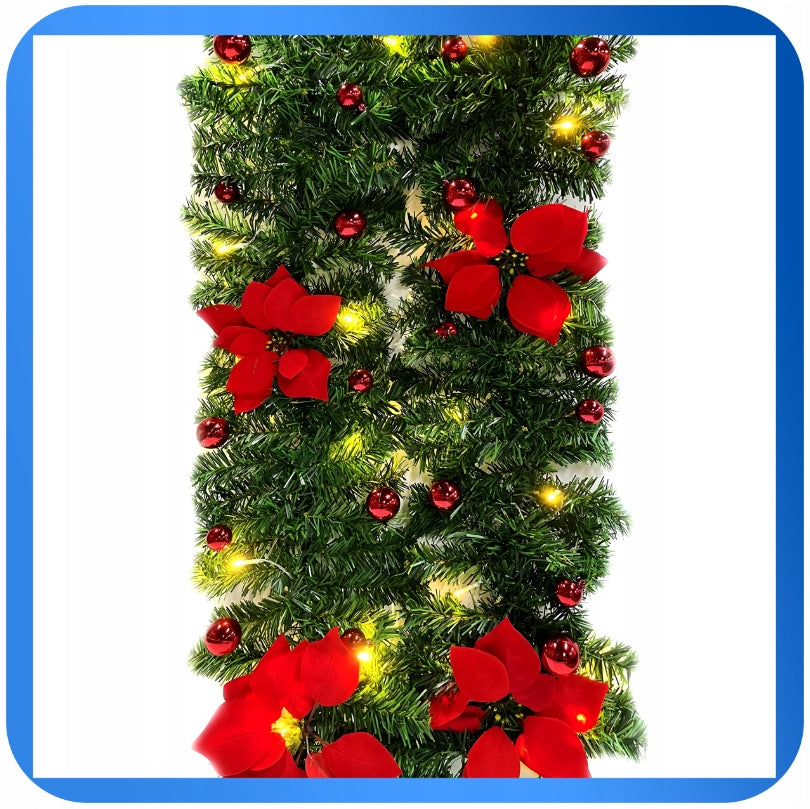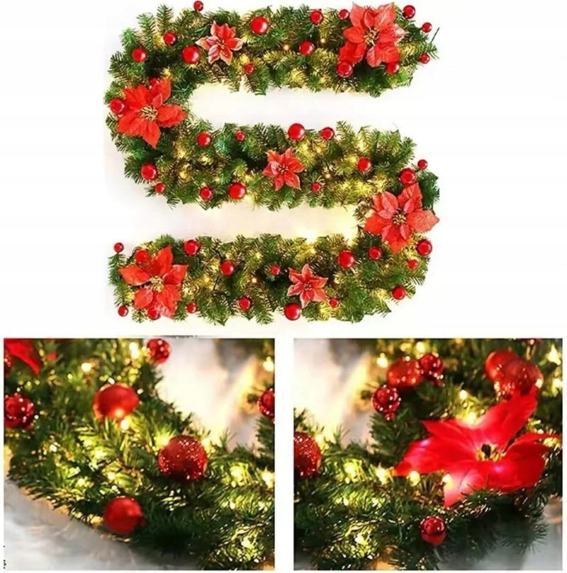 Kalėdinė girlianda tiršta su LED lemputėmis 270 cm, puošmena gėlė, AUKŠČIAUSIA KOKYBĖ