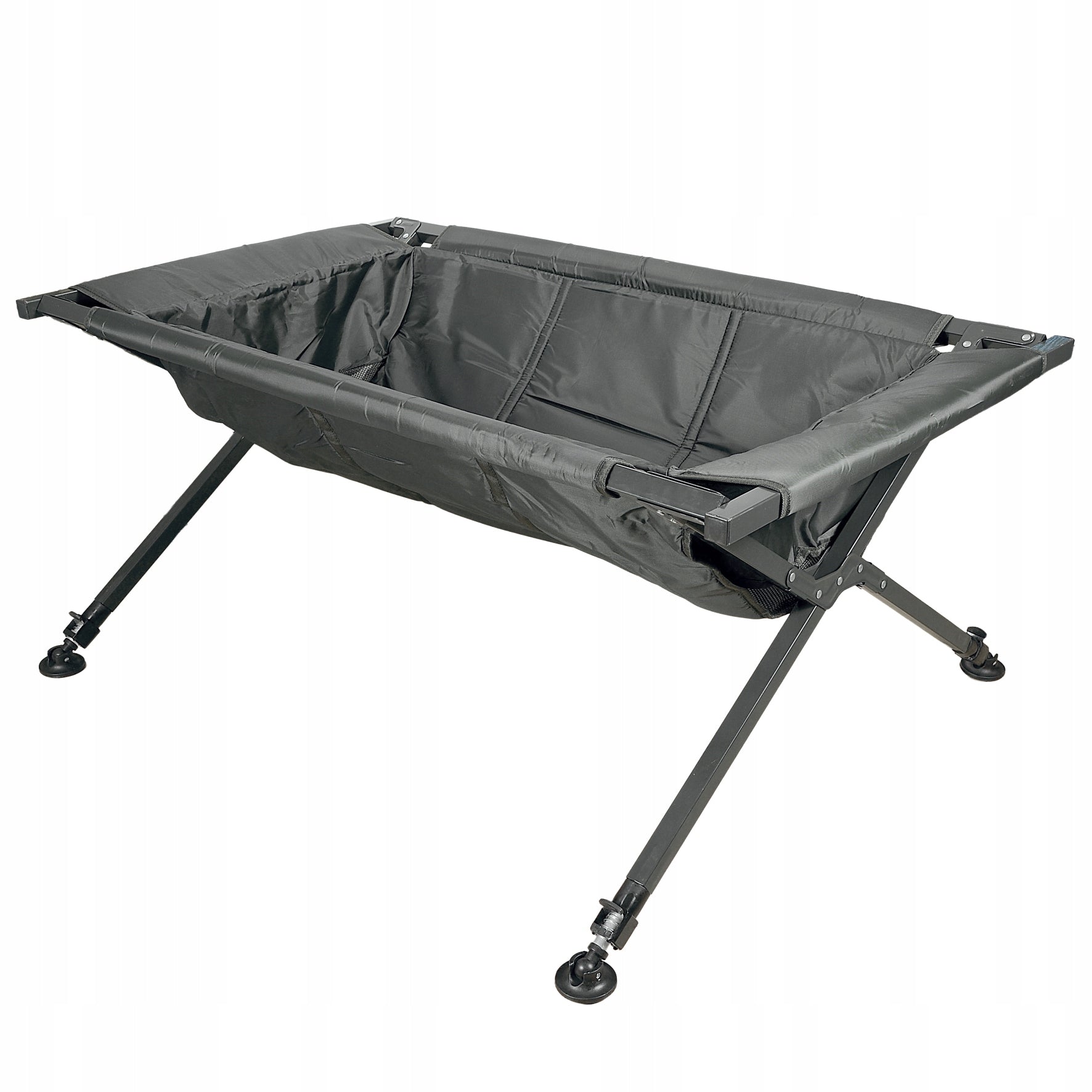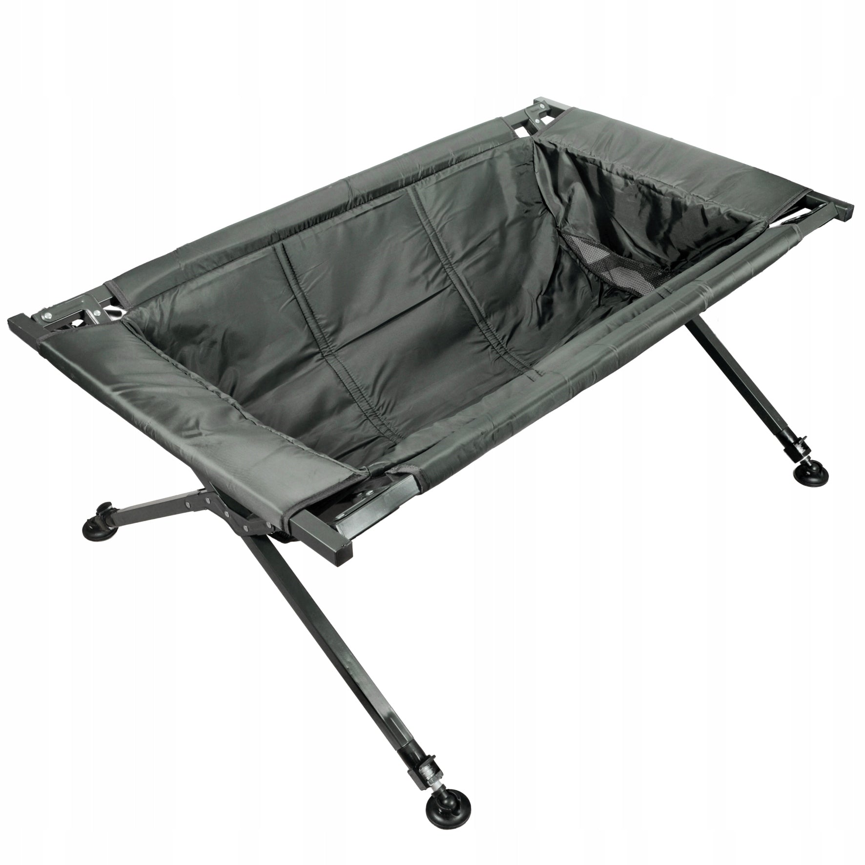 Ši HOKKAIDO karpių lova yra sukurta atsižvelgiant į profesionalių žvejų poreikius. Jos matmenys – 120 cm ilgio ir 70 cm pločio – užtikrina, kad net didžiausi karpiai turėtų pakankamai erdvės patogiai ilsėtis išėmus iš vandens. Reguliuojamos kojelės leidžia pasiekti iki 50-60 cm aukštį, o papildomi 10 cm reguliavimo diapazonas ant kojelių garantuoja nepriekaištingą stabilumą nelygiame krante. Papildomos dvi šoninės kišenės suteikia vietos smulkiems reikmenims, pavyzdžiui, dezinfekavimo priemonėms ar svarstyklėms. Greitai džiūstanti medžiaga ir lygi, lengvai valoma paviršiaus tekstūra padeda išlaikyti higieną ir sutrumpina paruošimo laiką tarp žvejybų. Tvirta konstrukcija ir kruopšti apdaila garantuoja ilgą tarnavimo laiką.