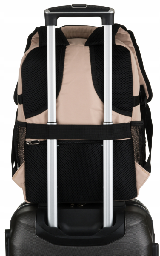 Kuprinė taip pat turi patogias petnešas, rankeną viršuje ir juostelę, leidžiančią prisegti kuprinę prie lagamino rankenos – ypatingai praktiška oro uoste vaikštant su keliais lagaminais.