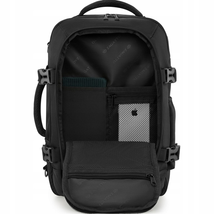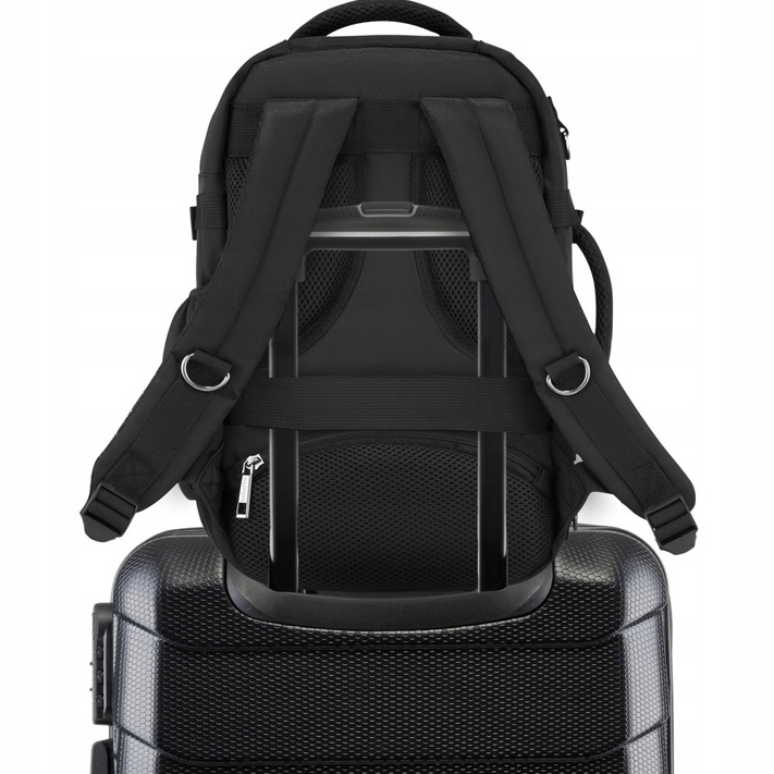 Ši universali juoda kelioninė kuprinė 40×25×20 cm yra puikus pasirinkimas dažnai keliaujantiems. Sukurta atsižvelgiant į Ryanair, Wizzair ir kitų oro linijų rankinio bagažo reikalavimus, ji leidžia patogiai susidėti visus būtiniausius daiktus nepermokant už papildomą bagažą.